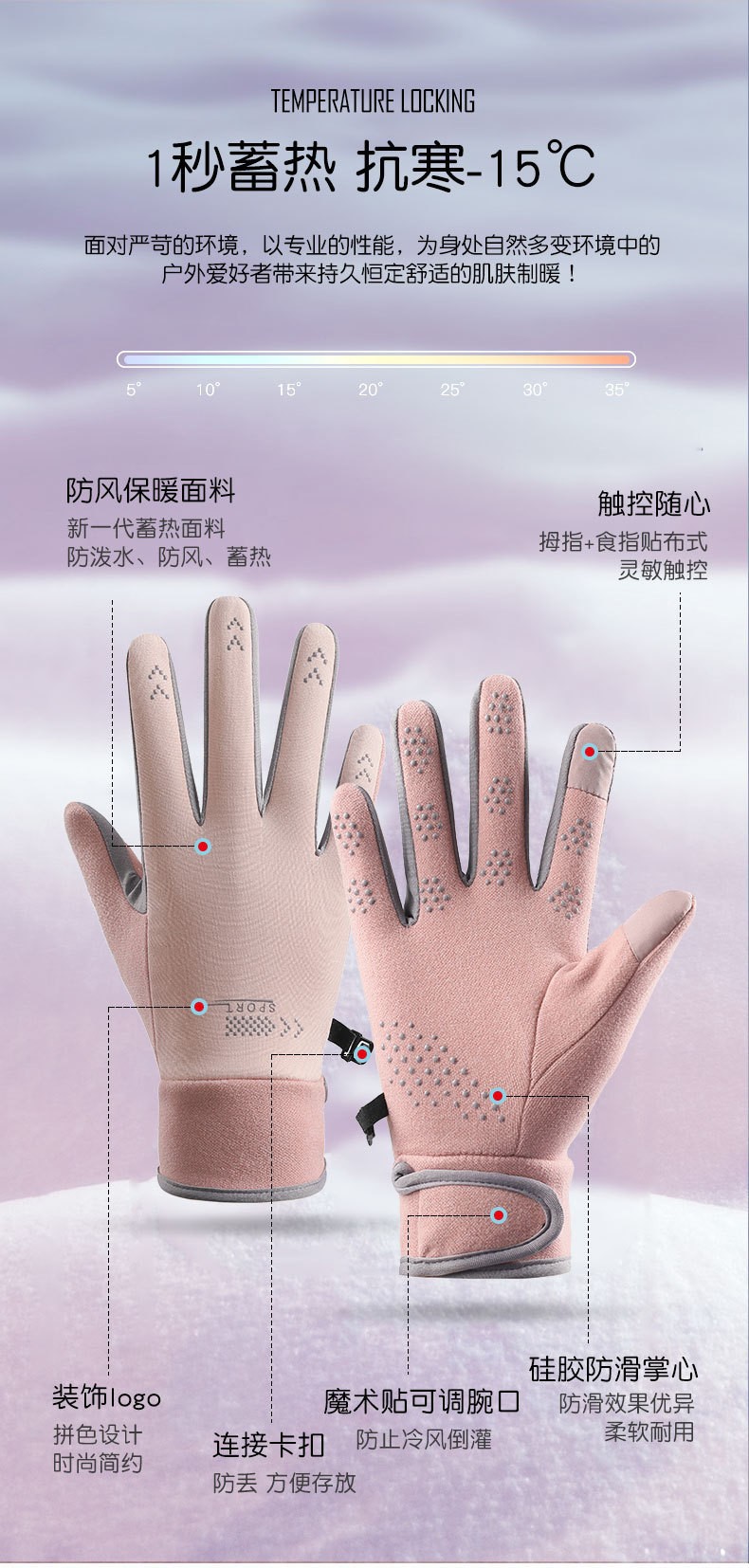 DeRong 가을, 겨울 따뜻한 장갑 여성용 경량 플러스 벨벳 방풍 사이클링 미끄럼 방지 터치 스크린 방한 장갑 야외 스포츠