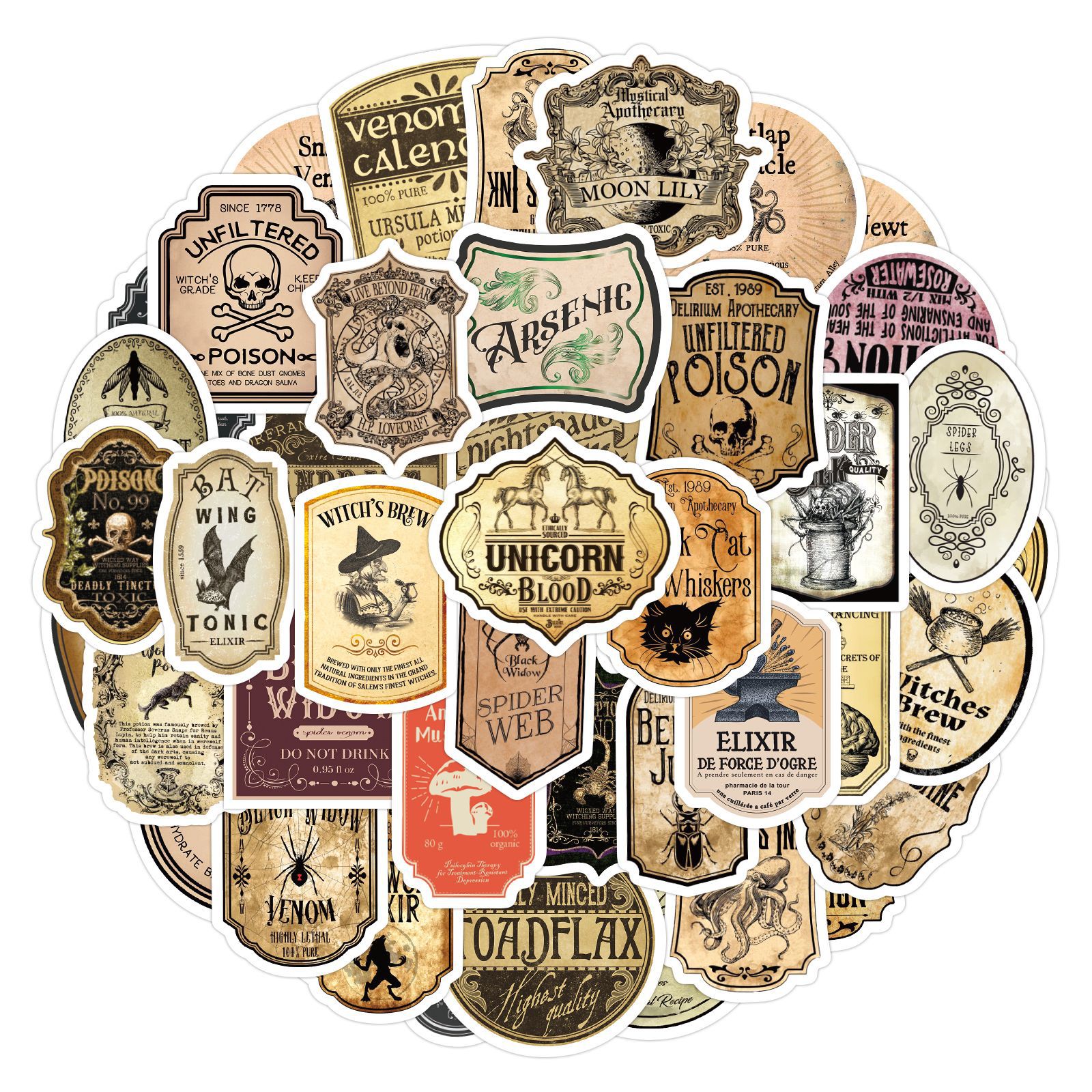 60 크로스 보더 물약 라벨 낙서 스티커 DIY 스케이트 보드 컵 수하물 빈티지 방수 스티커 도매스토어 가기