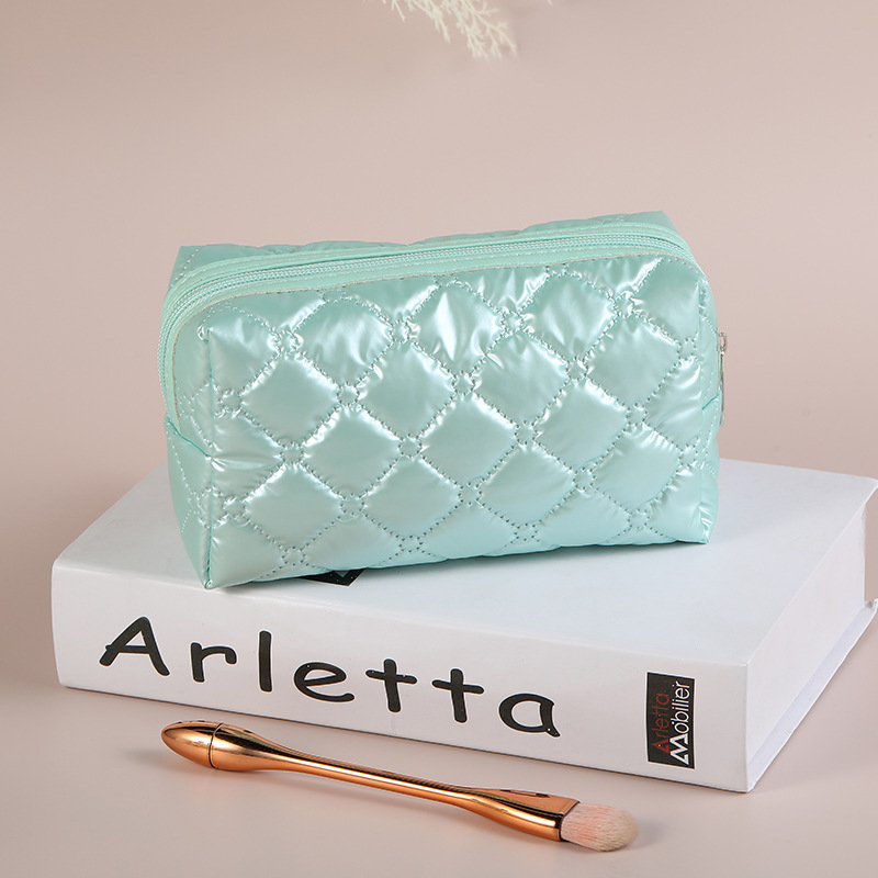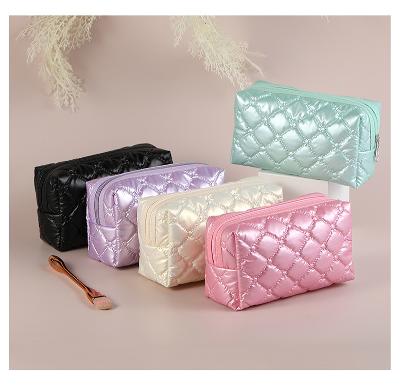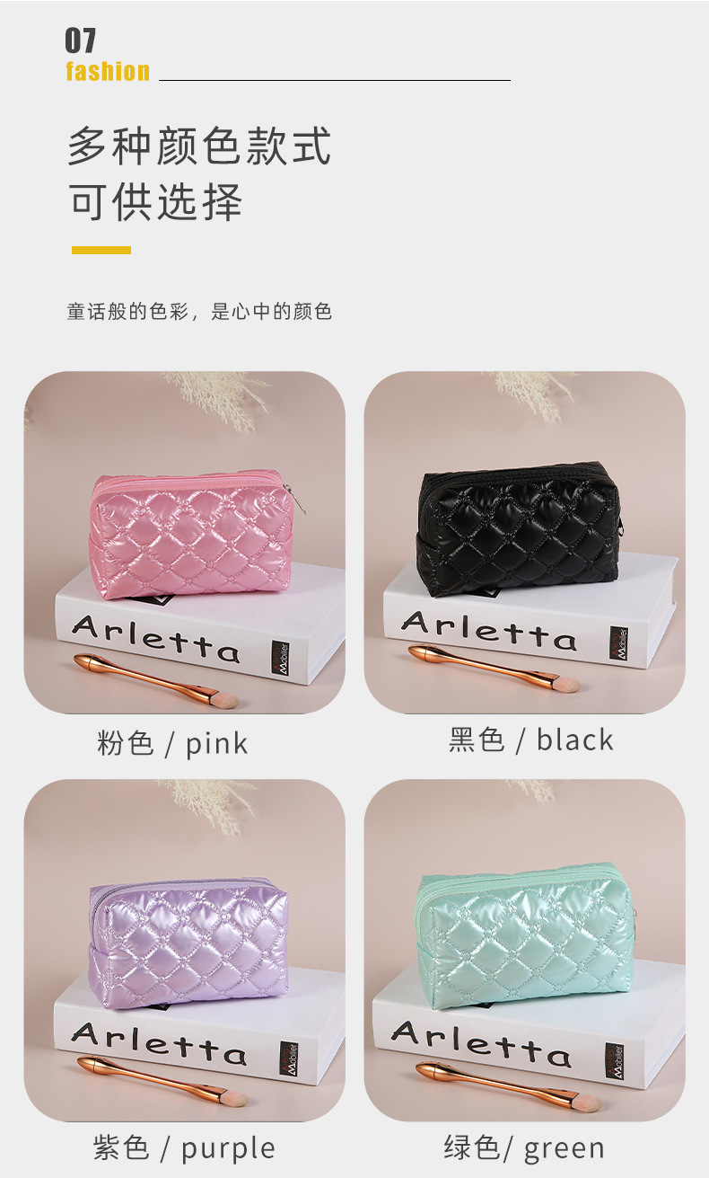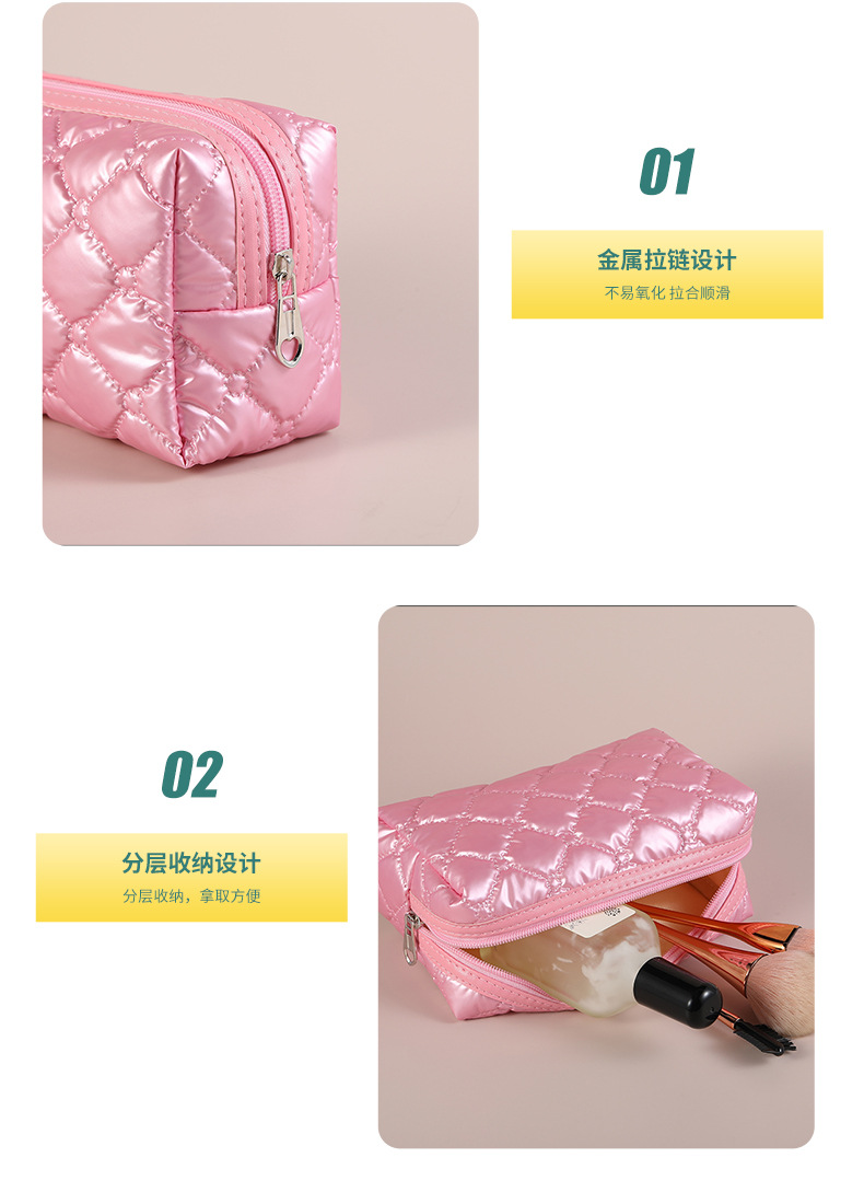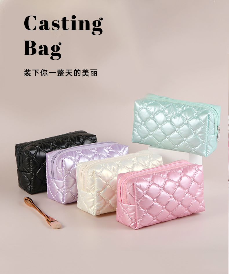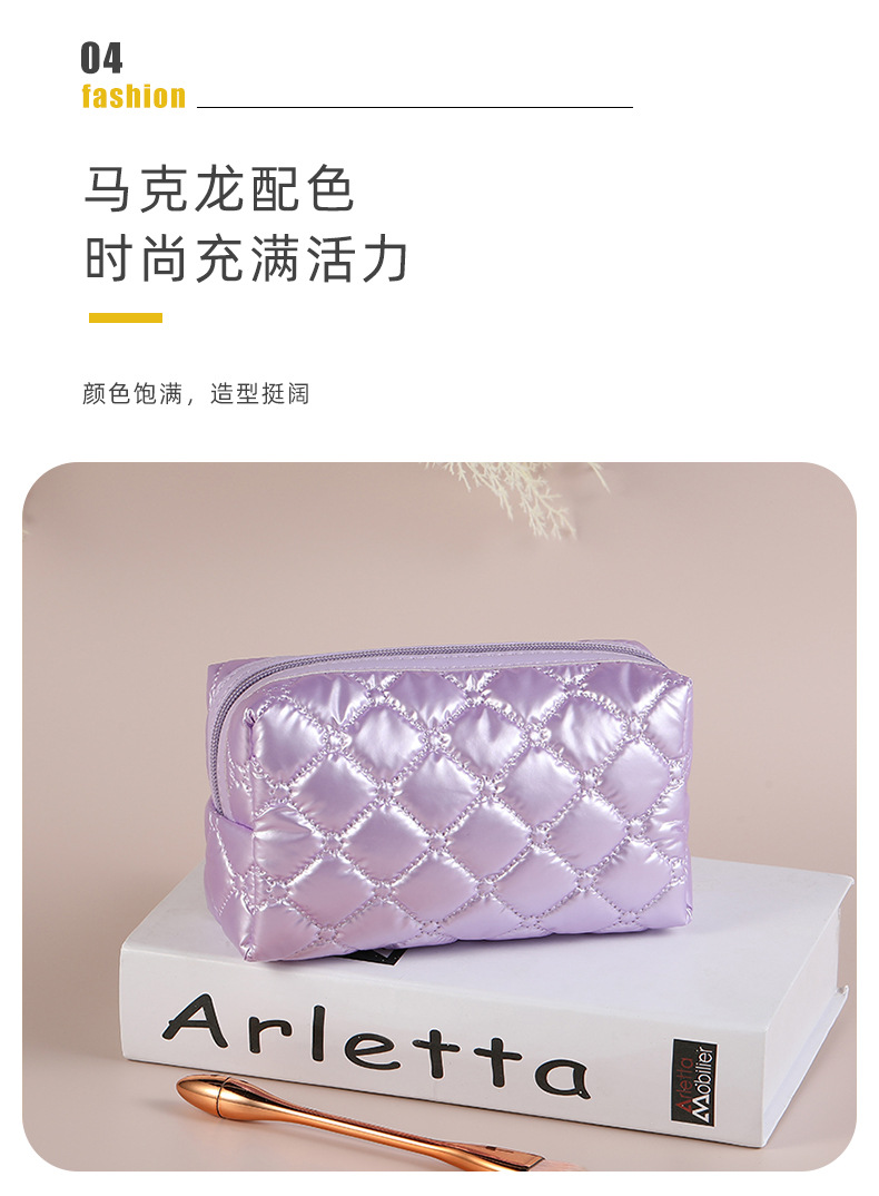 2023 새로운 가을과 겨울 다운 자수 라인 마름모꼴 유럽과 미국 화장품 가방 휴대용 패션 크리에이티브 양각 캔디 백스토어 가기