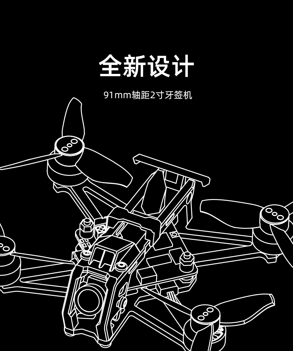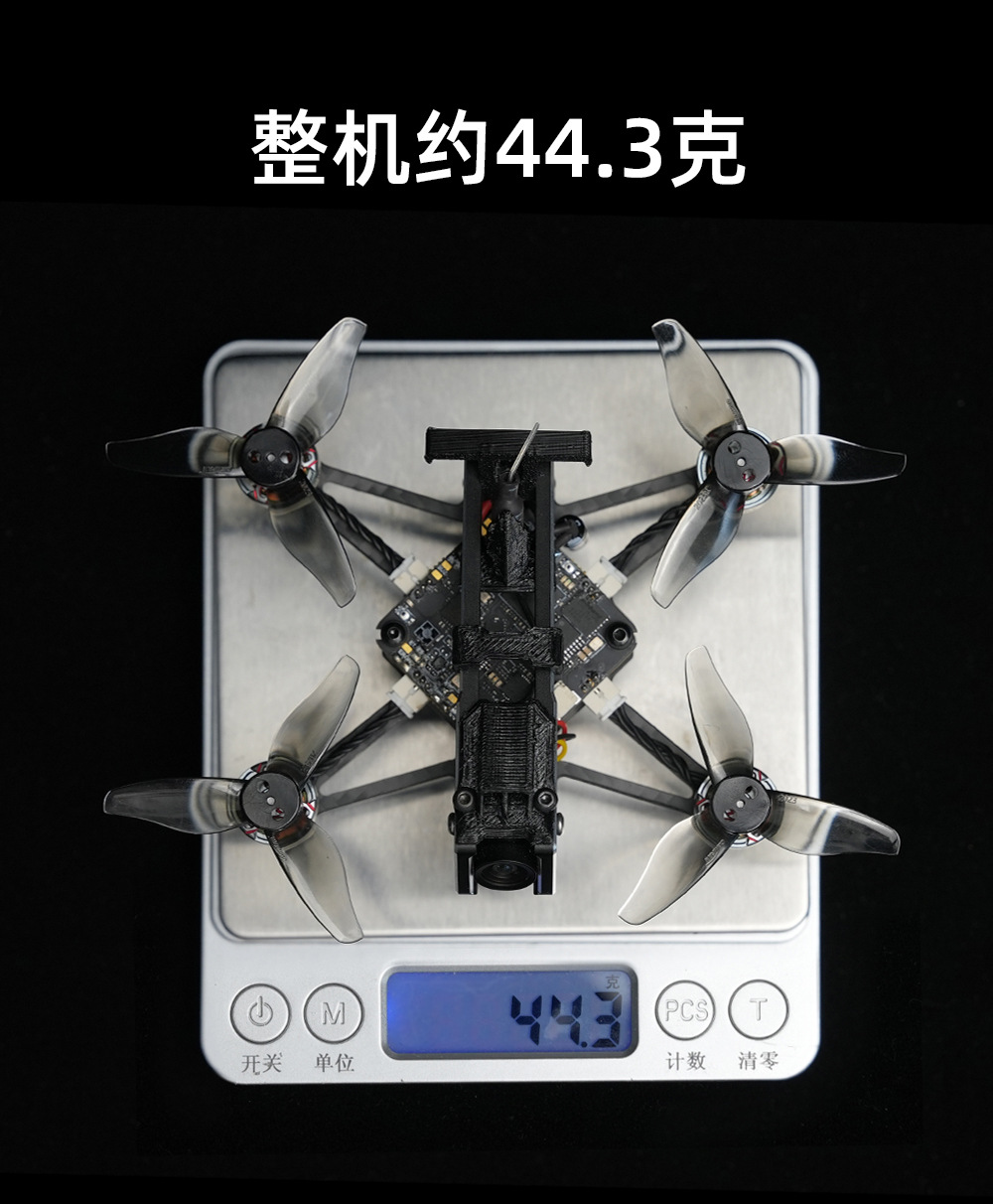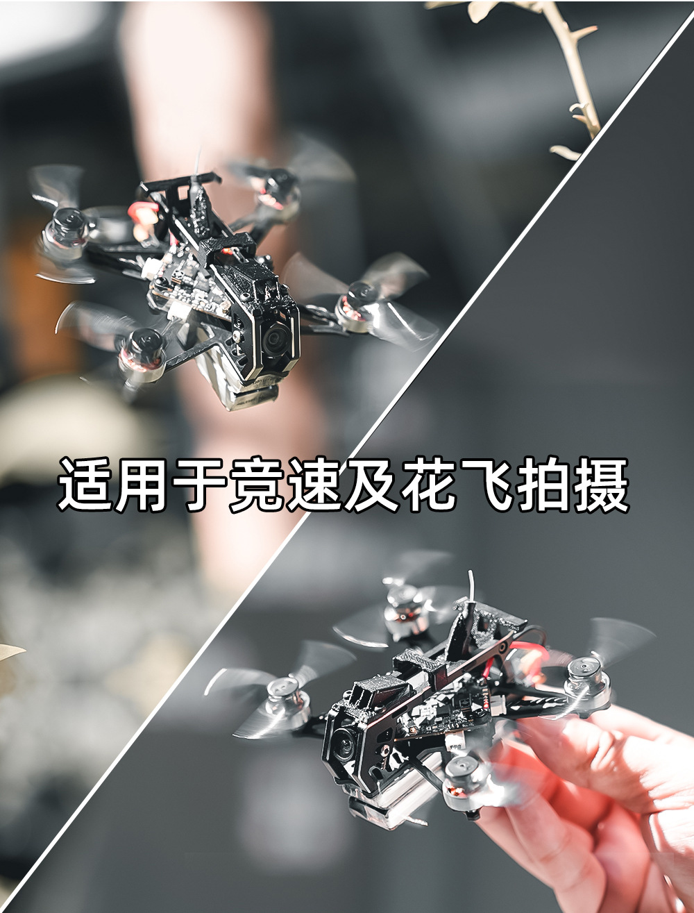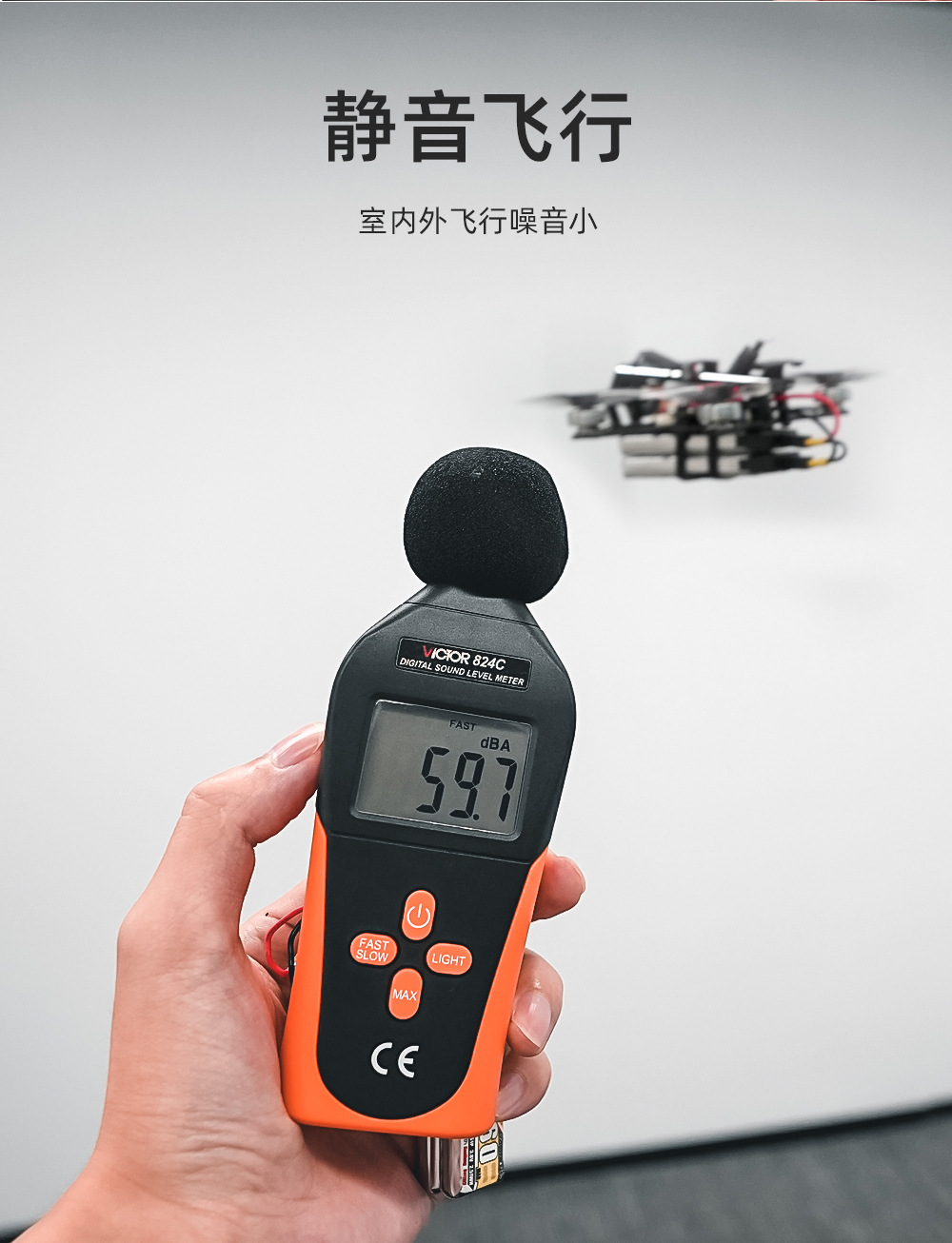 标配Gemfan1610二叶桨叶 ,飞行丝滑且飞行声音仅70分贝;