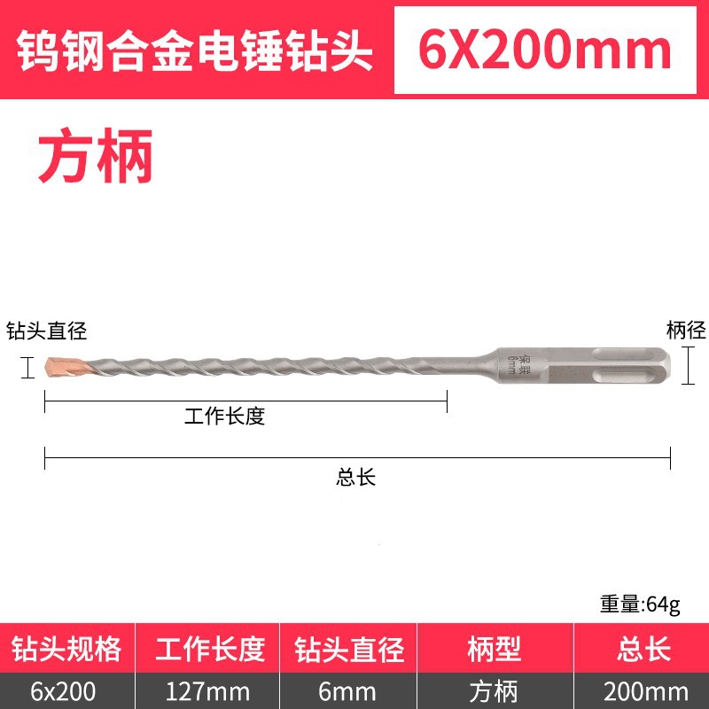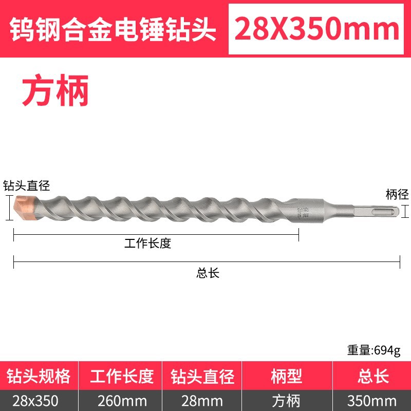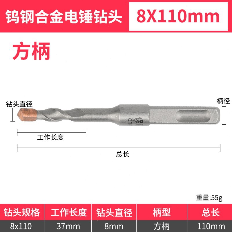 텅스텐 강철 확장 타악기 드릴 전기 해머 드릴 벽을 통해 벽을 통해 콘크리트 사각형 핸들 원형 핸들 드릴링 슬롯 특수 터닝 헤드