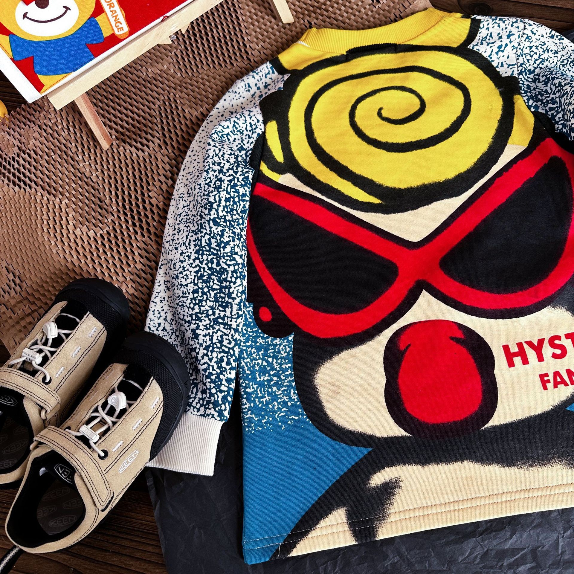 [재고] Jingyuanjia 23ss 가을 레저 느슨한 블랙 슈퍼 큰 머리 낙서 착용