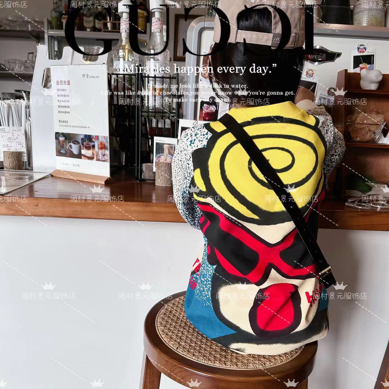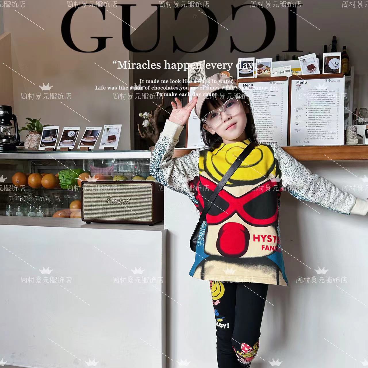 [재고] Jingyuanjia 23ss 가을 레저 느슨한 블랙 슈퍼 큰 머리 낙서 착용스토어 가기