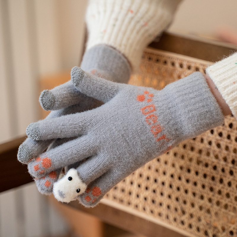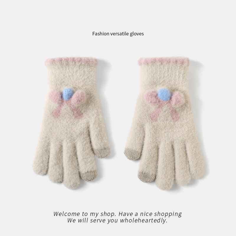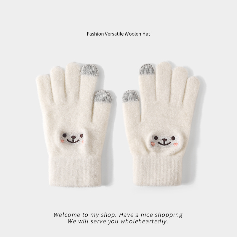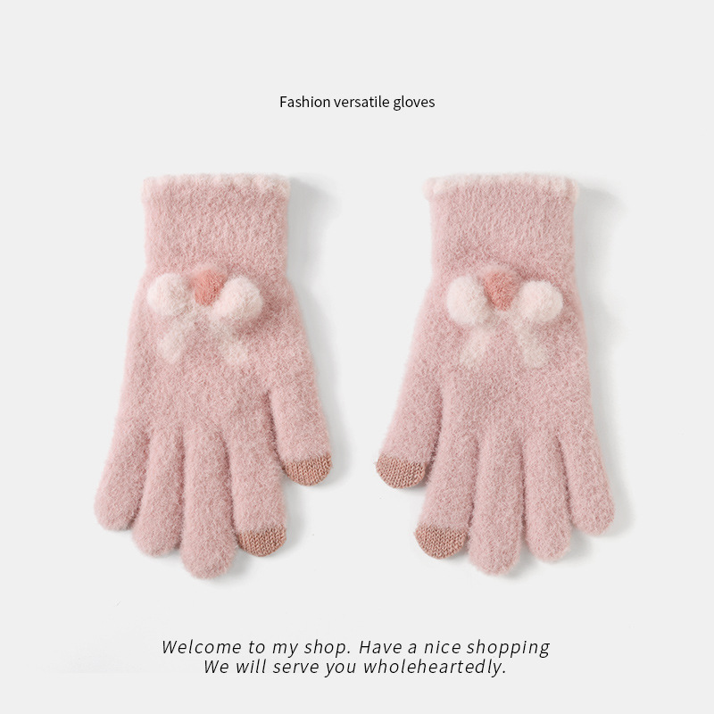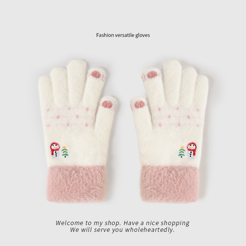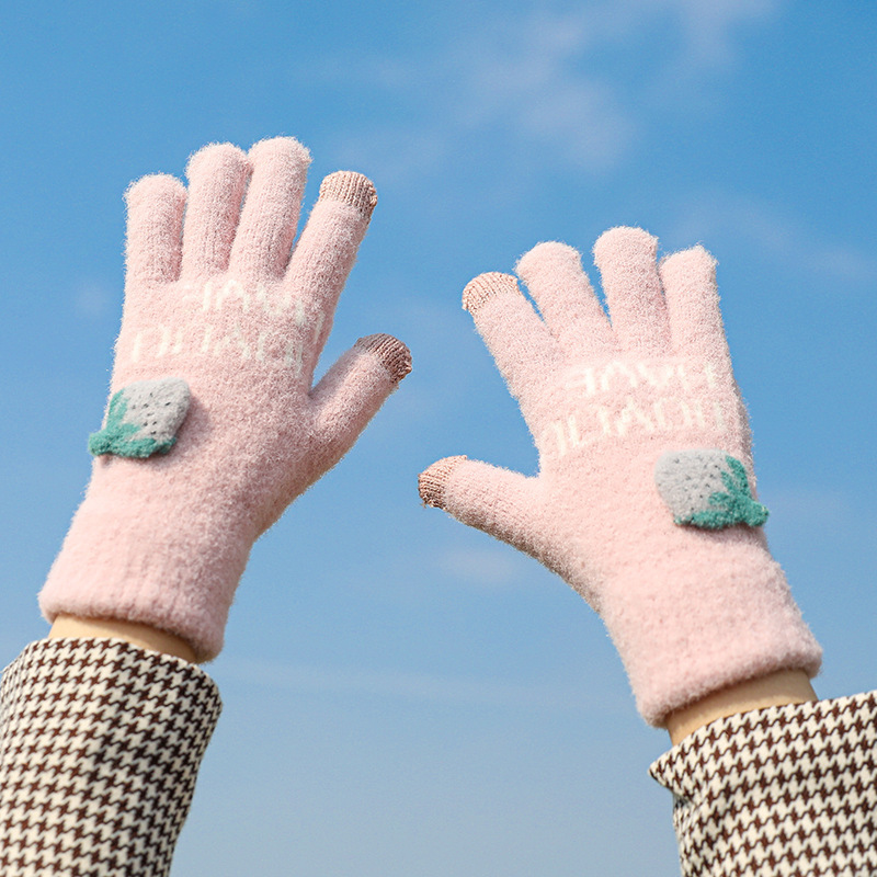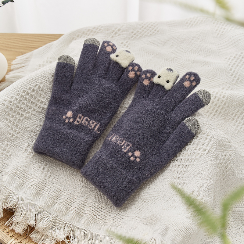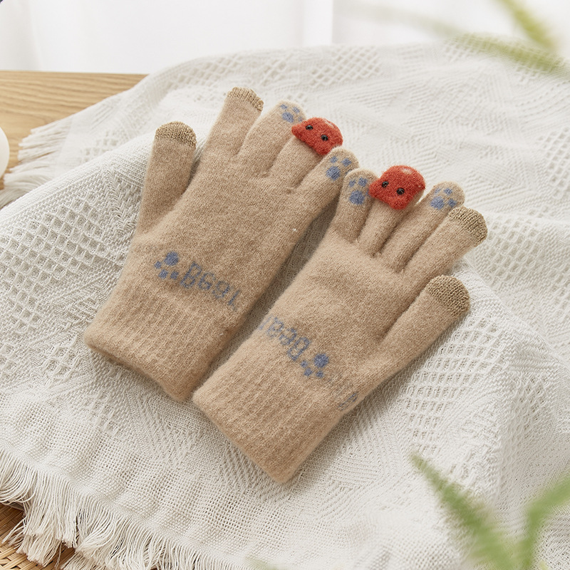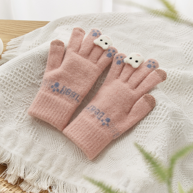 장갑 겨울 여자의 귀여운 따뜻한 겨울 사이클링 면 장갑 기모 두꺼운 사이클링 운전 터치 스크린 감기 보호