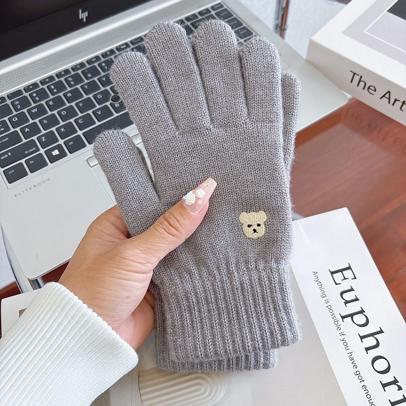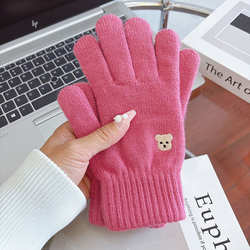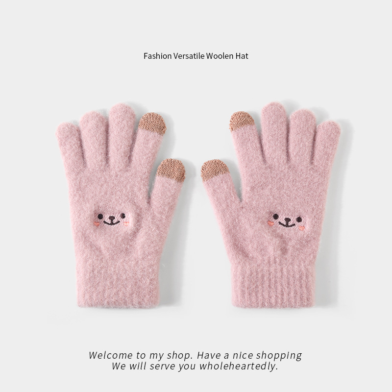 • 자수 곰돌이 장갑 – 로즈 핑크