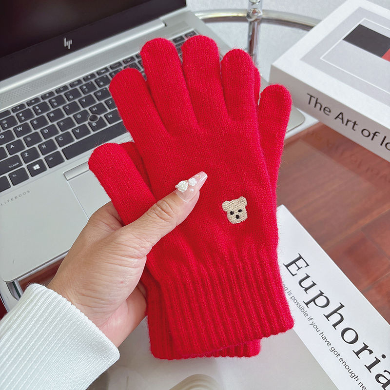 • 자수 곰돌이 장갑 – 레드 (또는 빨강)
