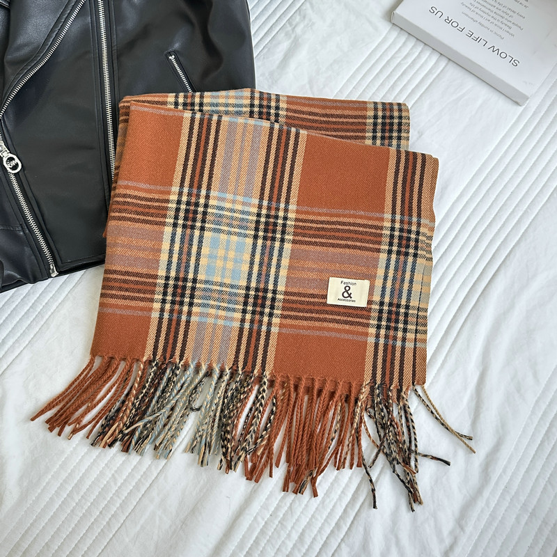 캐시미어 격자 무늬 스카프와 한국인 블로거 가을과 겨울 여성을위한 새로운 두꺼운 따뜻한 술 숄 스카프스토어 가기