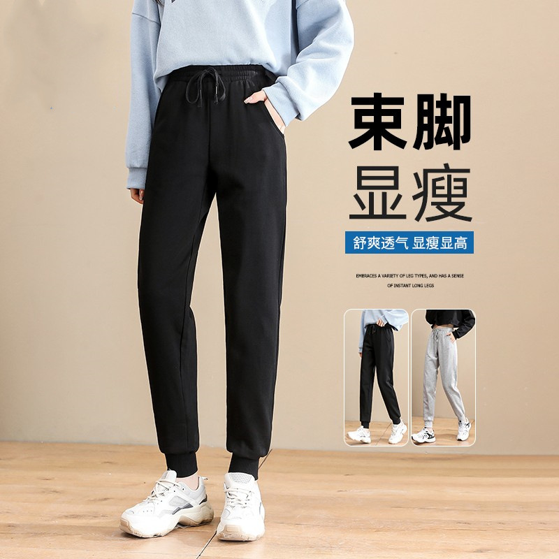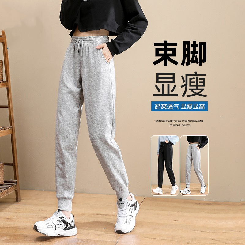 여성용 9 점 스포츠 바지 여성용 봄과 가을 얇은 다리 발가락 루즈한 캐주얼 그레이 스몰 스웨트 팬츠 크로스 보더스토어 가기