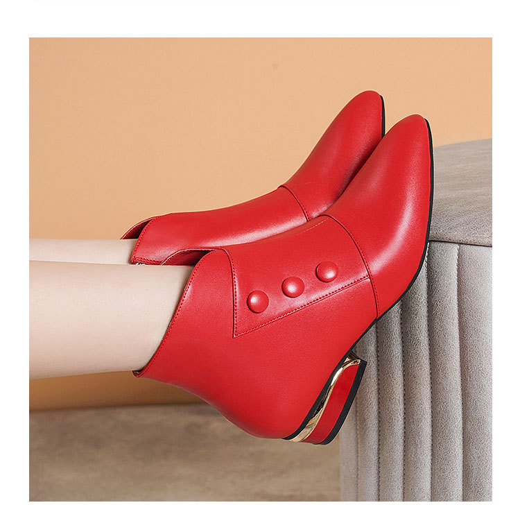 유럽과 미국 첼시 부츠 소가죽 뾰족한 발가락 부츠 여성용 정품 가죽 플랫 힐 짧은 배럴 마틴 부츠 미끄럼 방지 통기성 빨간 부츠