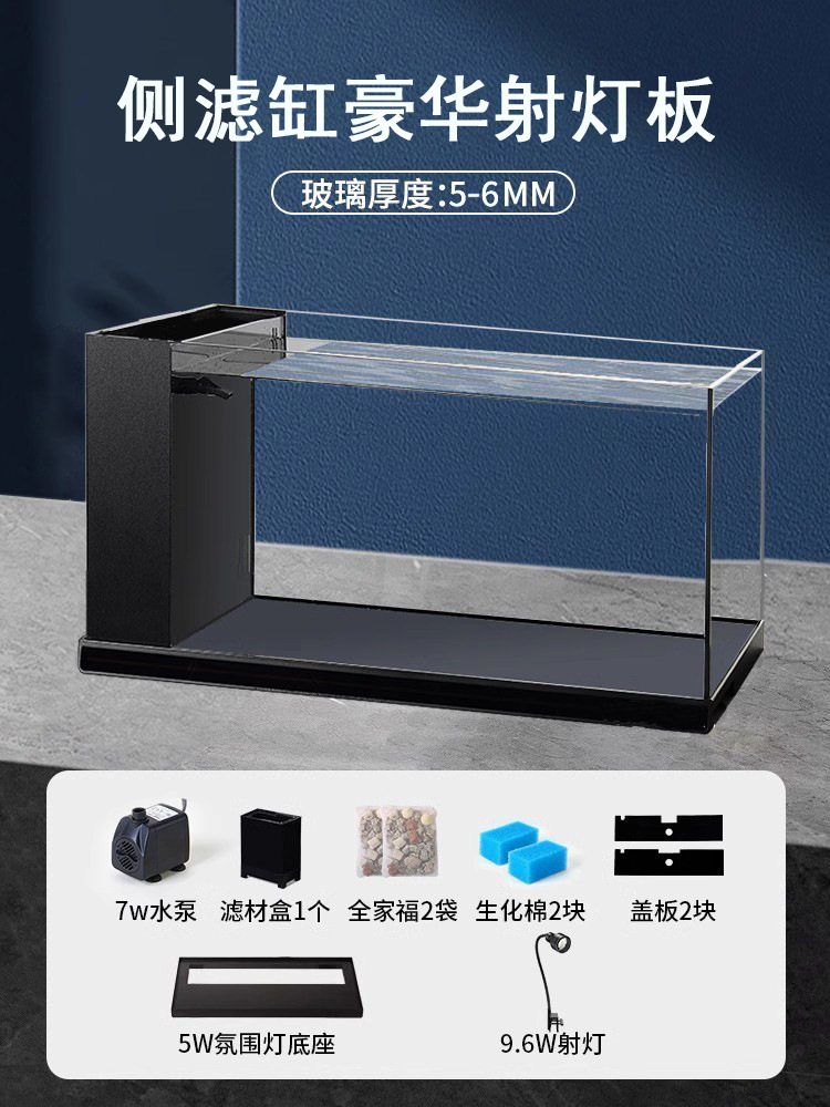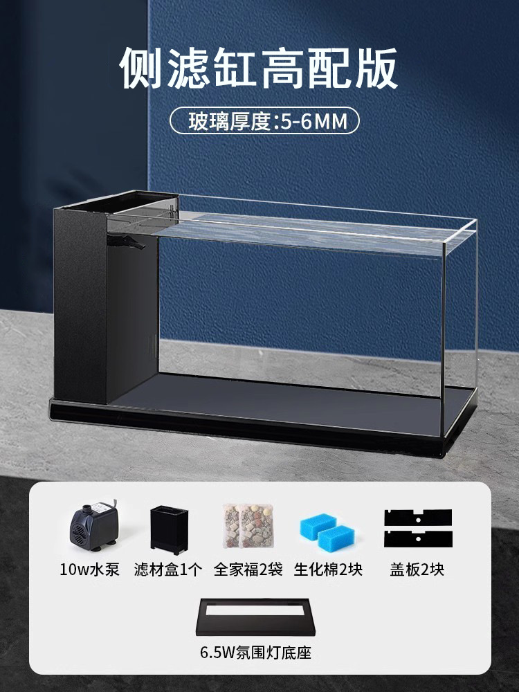 예 울트라 화이트 유리 측면 필터 어항 거실 소 조경 맨손 탱크 탁상 생태 물고기 거북이 탱크 수조