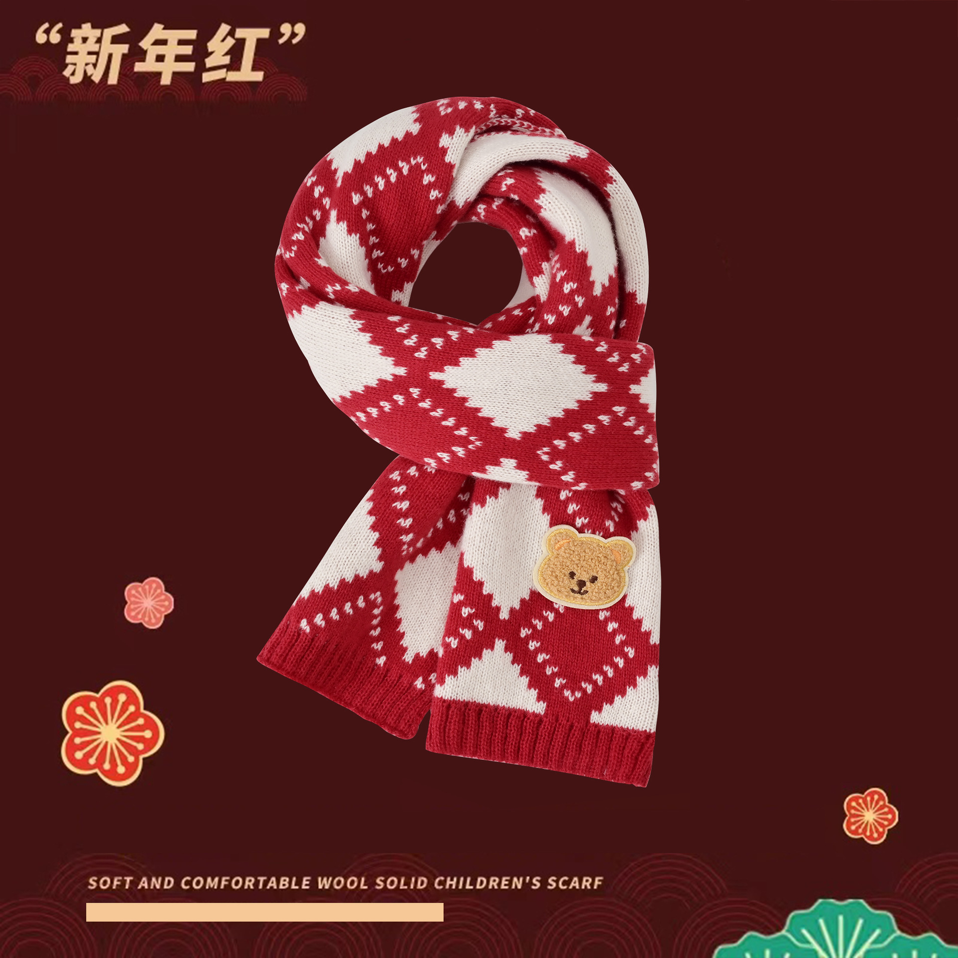 어린이 니트 스카프 가을과 겨울 아기 곰 울 스카프 따뜻한 패션 격자 무늬 소년 소녀 스카프