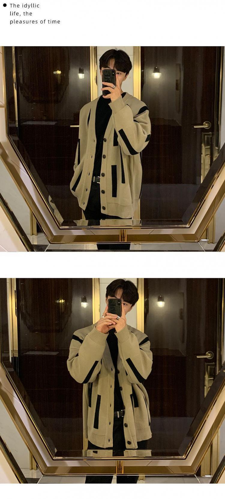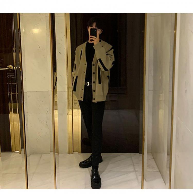 UNMUN2023 새로운 스웨터 남성용 느슨한 게으른 스타일 한국 유행 독특한 캐주얼 V-넥 스웨터 가디건스토어 가기