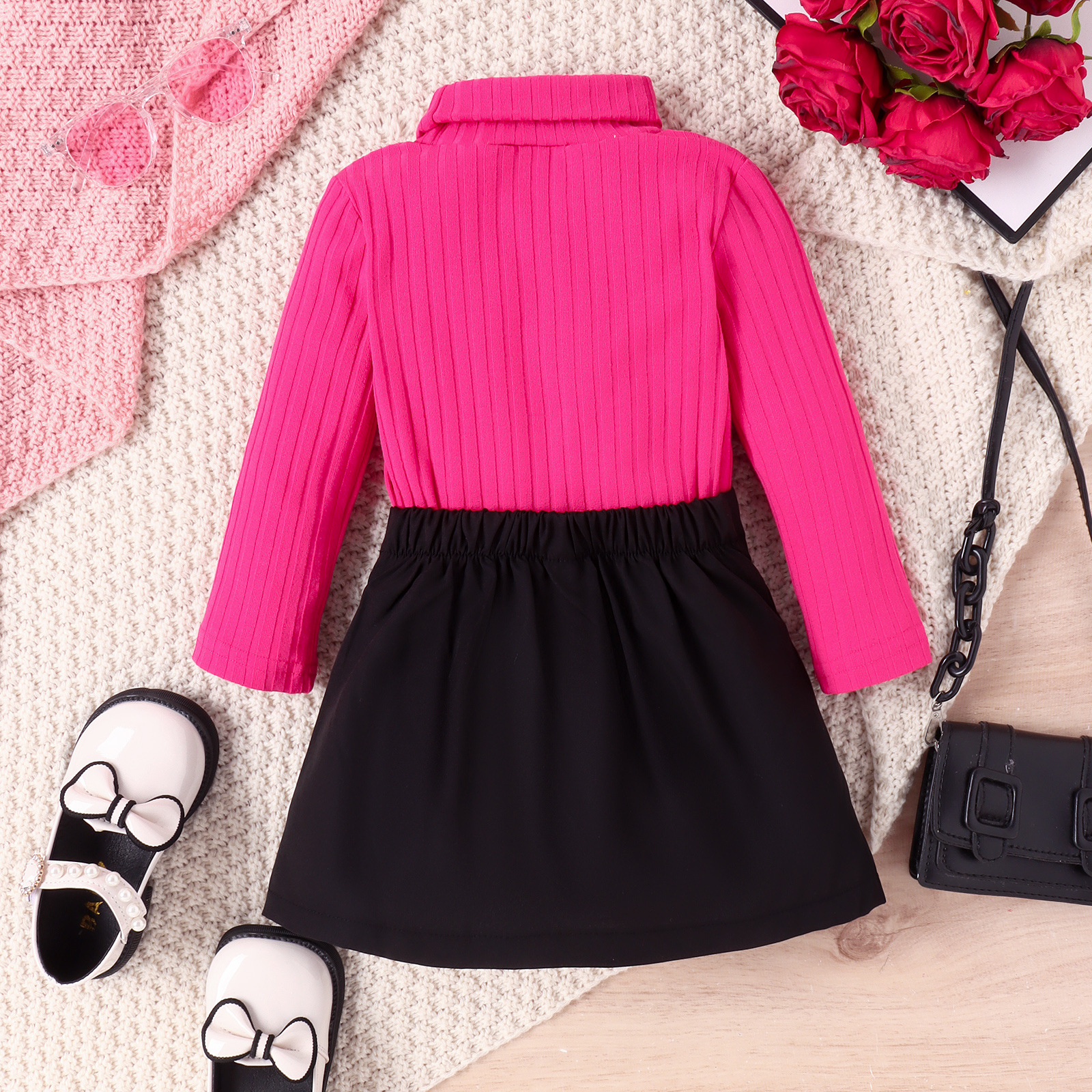 Baoxin 아동 의류 새로운 유럽과 미국 여자 와이드 피트 스트립 높은 칼라 긴 소매 탑 + 주름 치마 가을과 겨울 세트