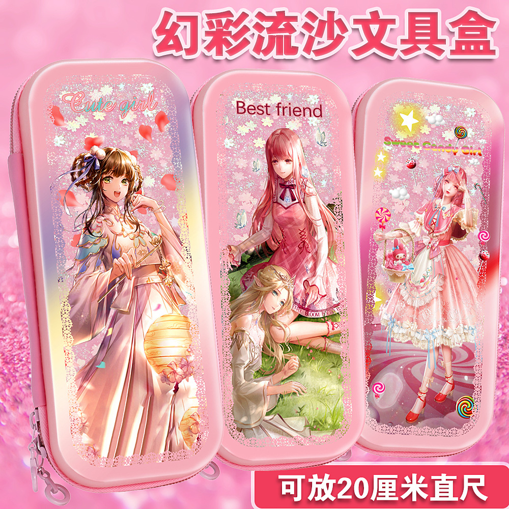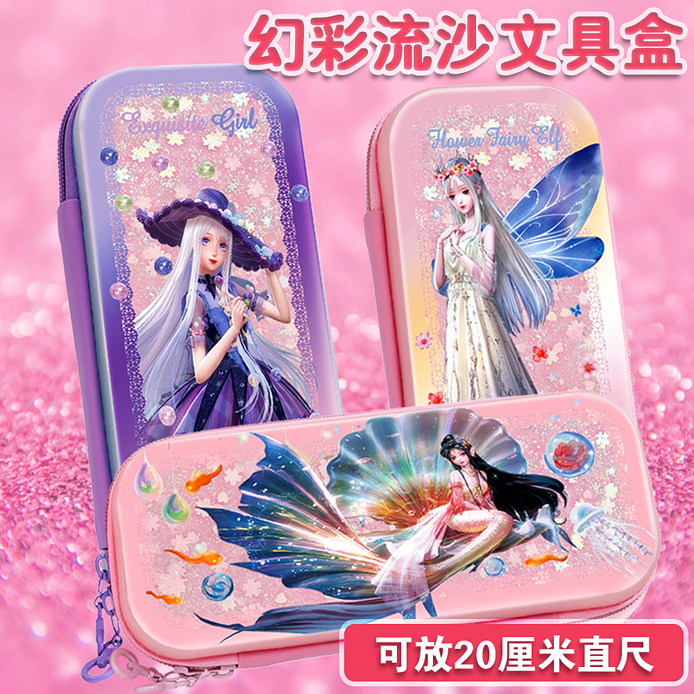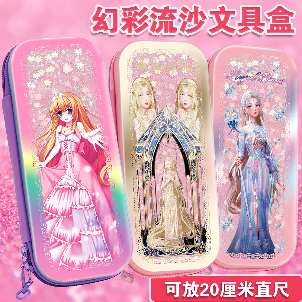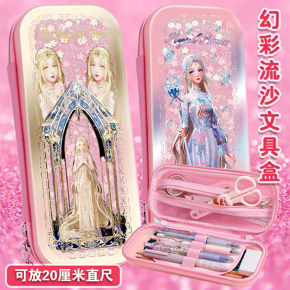 빠른 모래 연필 가방 다기능 대용량 여성 귀여운 어린이 공주 3 층 문구 상자 초등학교 연필 가방