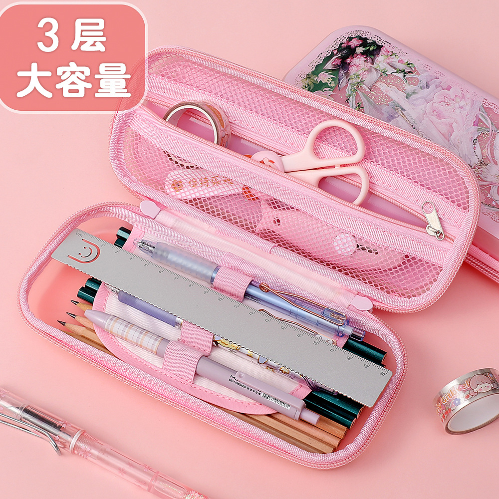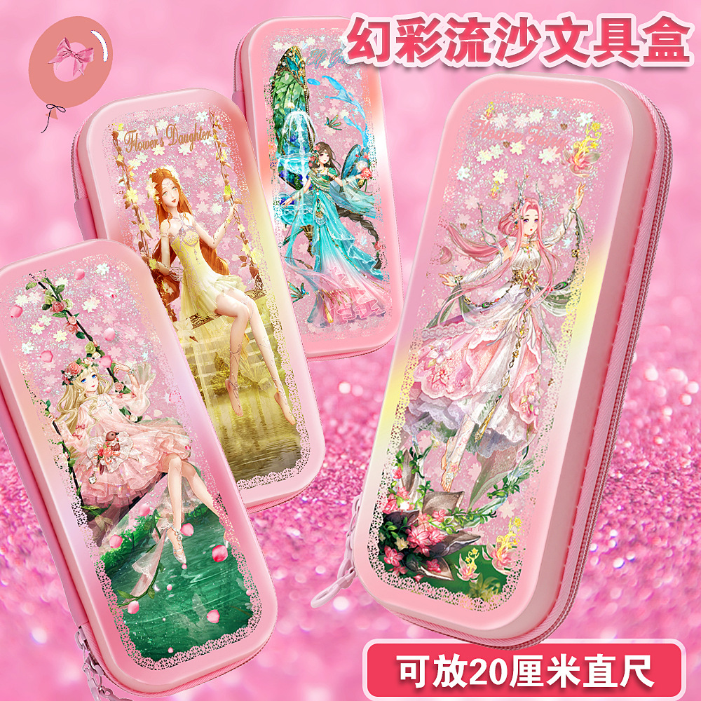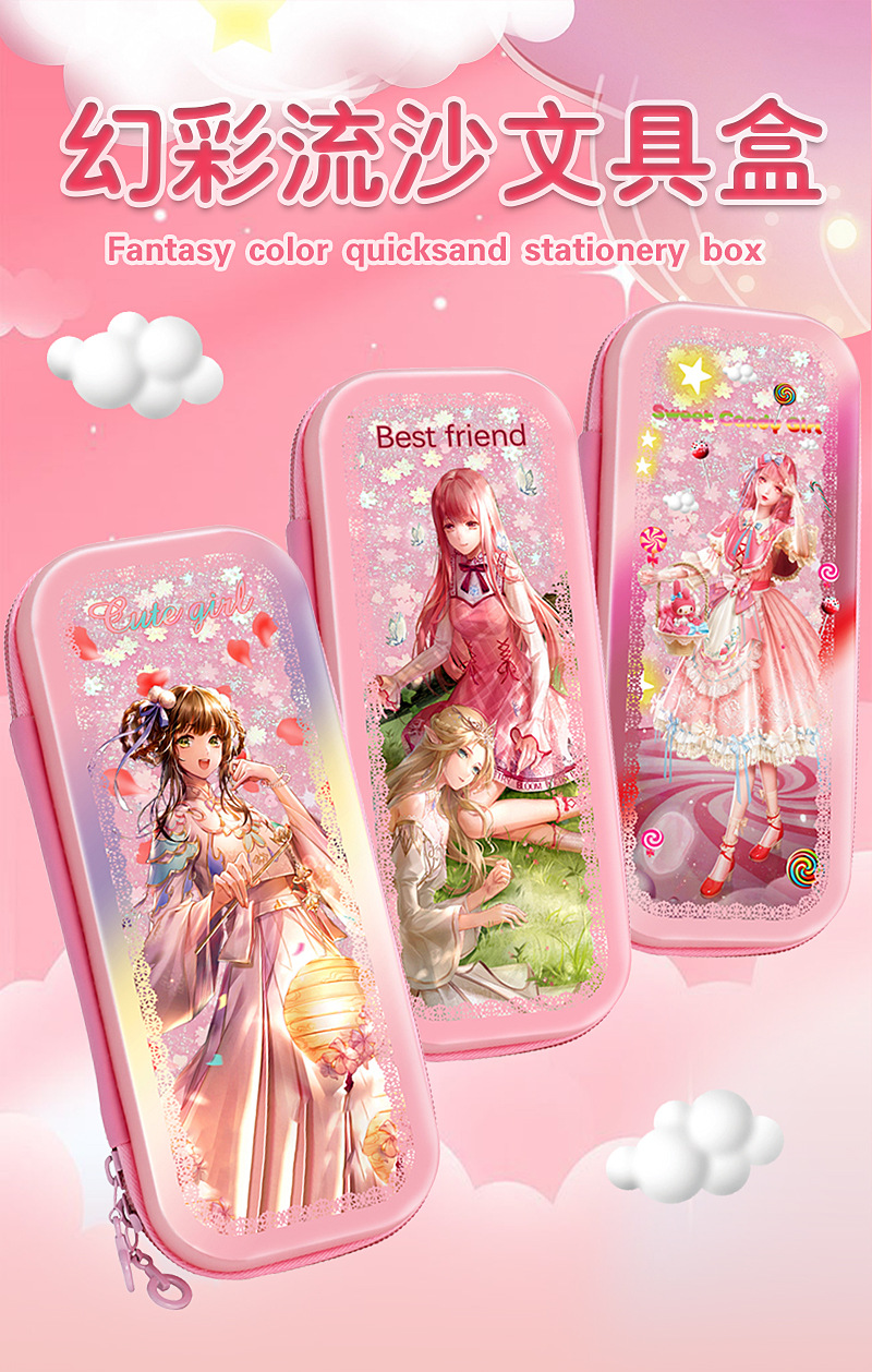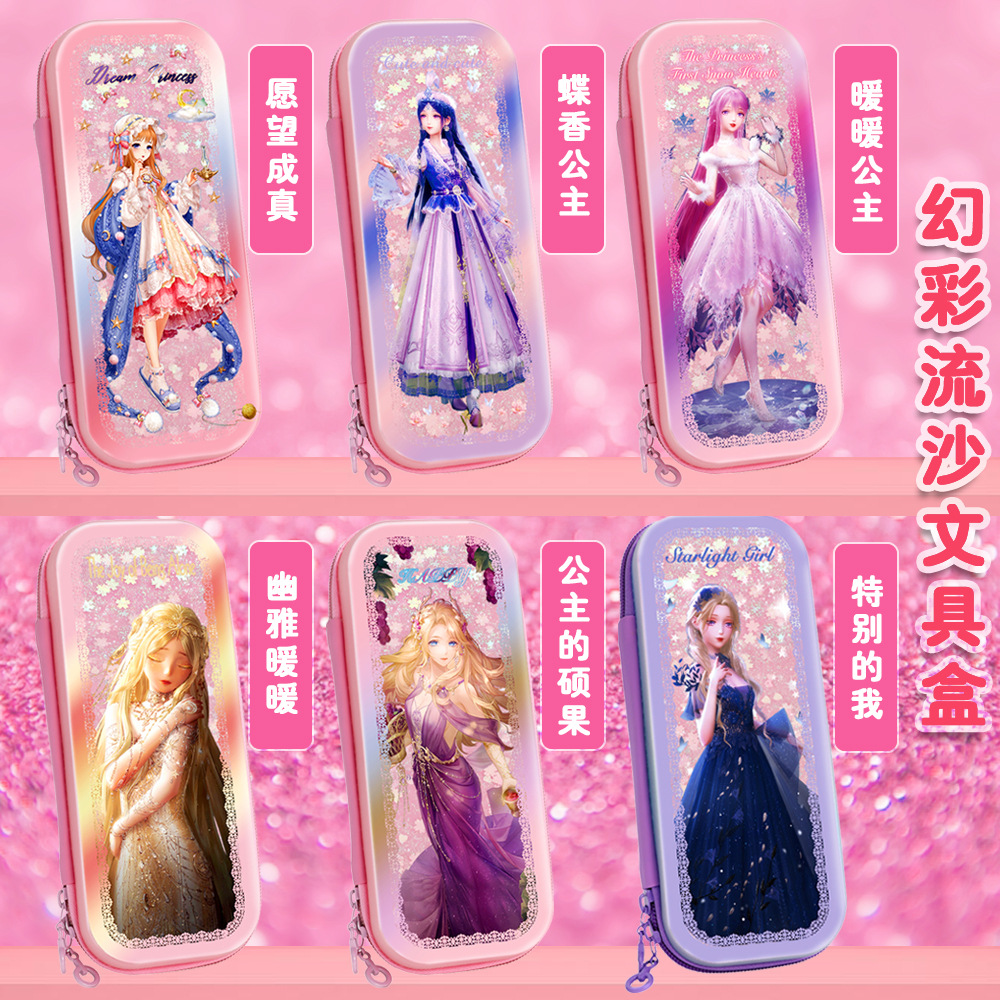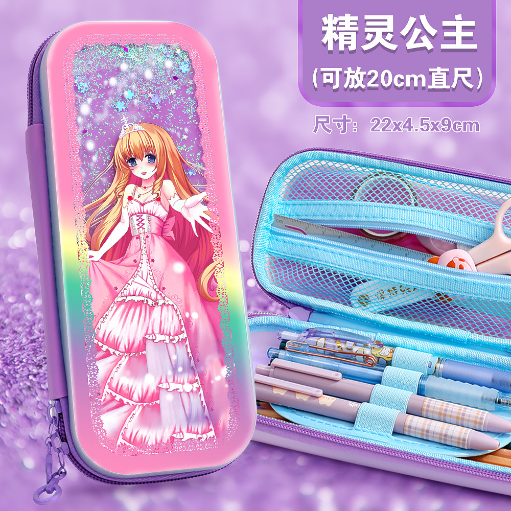 빠른 모래 연필 가방 다기능 대용량 여성 귀여운 어린이 공주 3 층 문구 상자 초등학교 연필 가방