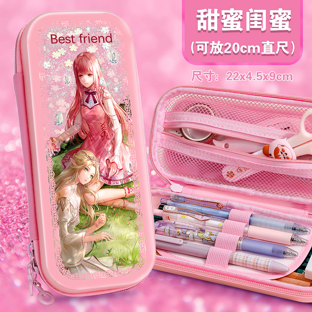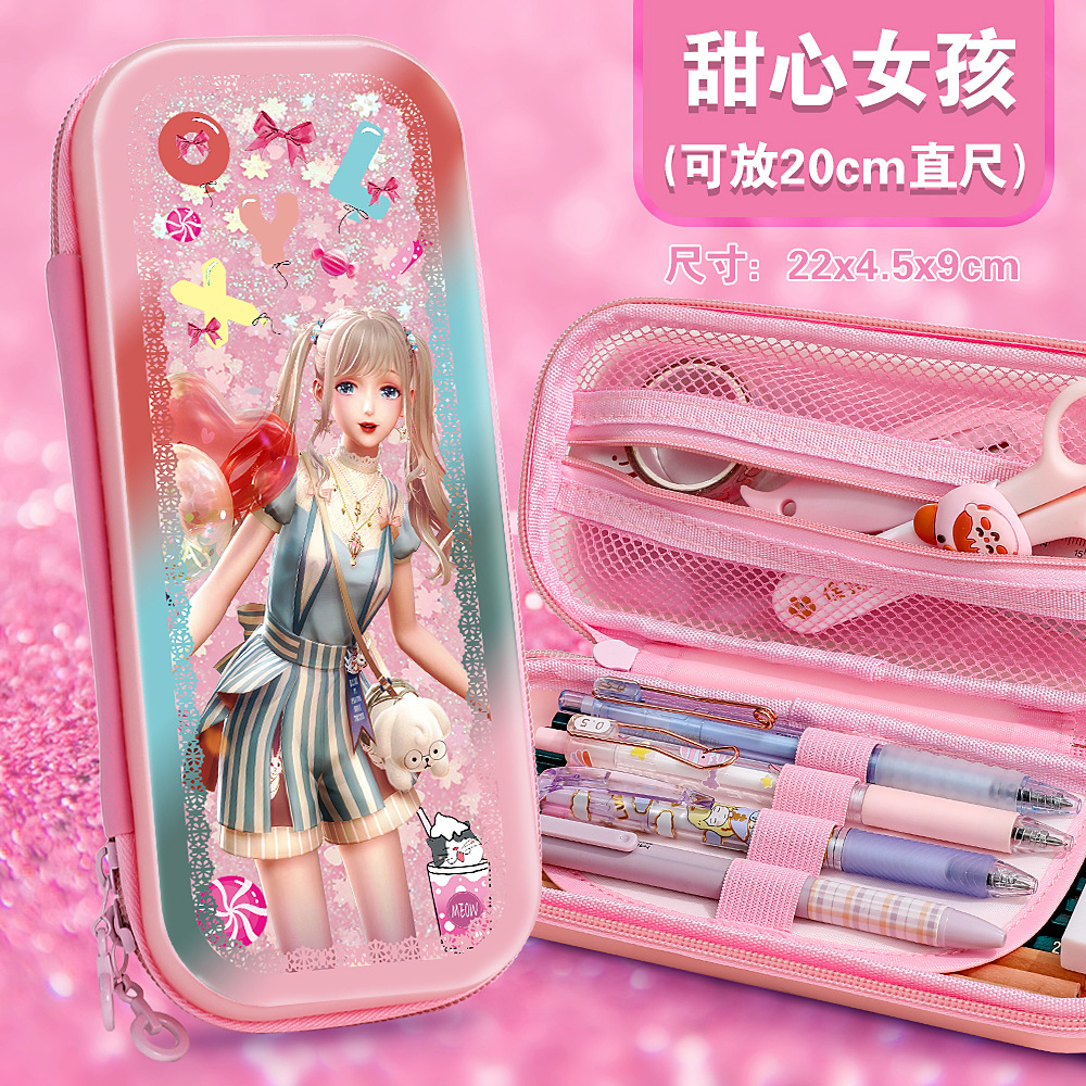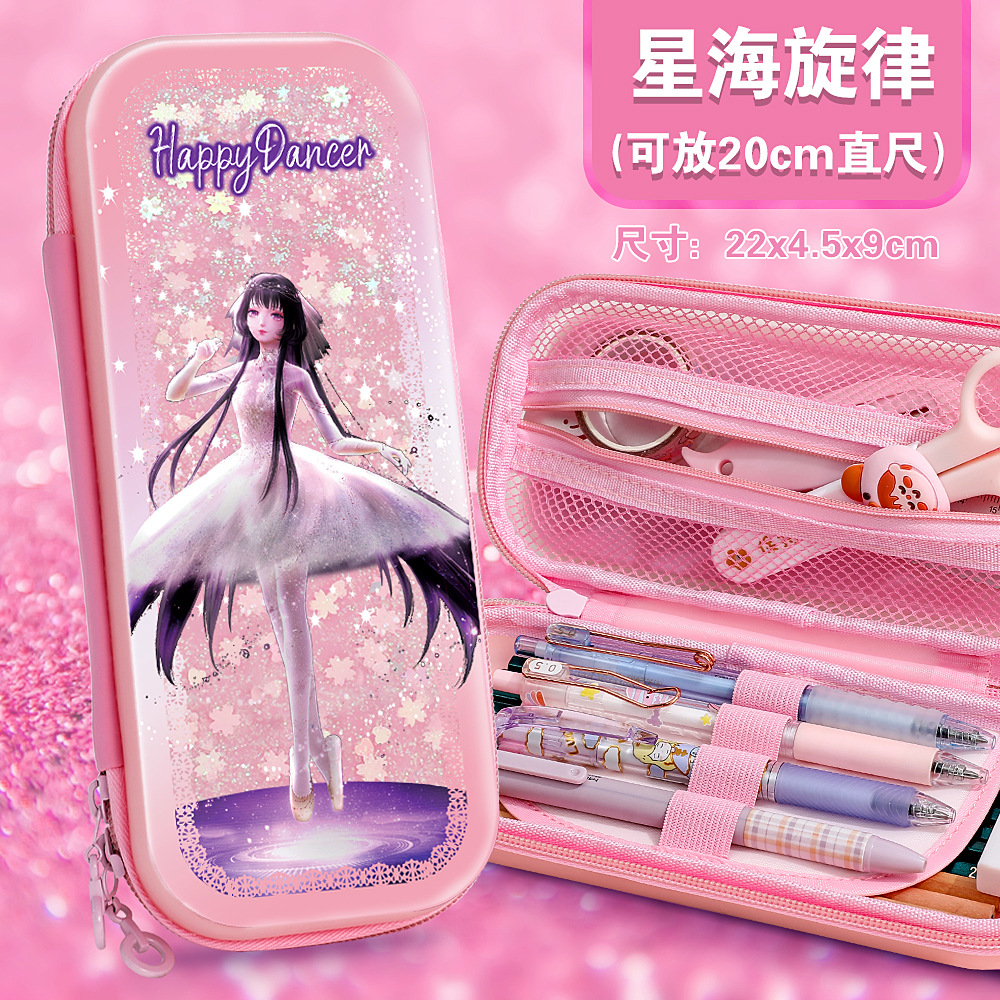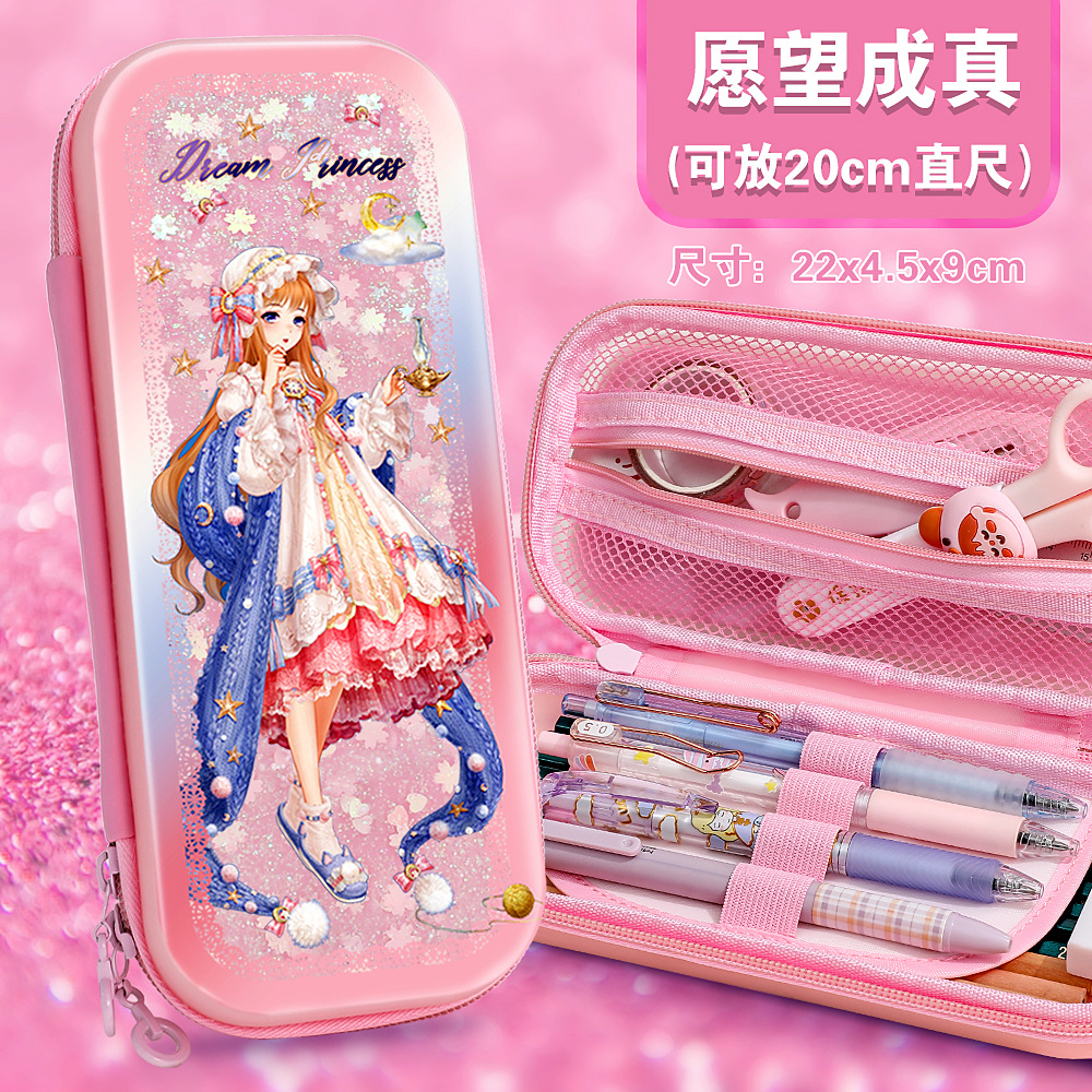 빠른 모래 연필 가방 다기능 대용량 여성 귀여운 어린이 공주 3 층 문구 상자 초등학교 연필 가방
