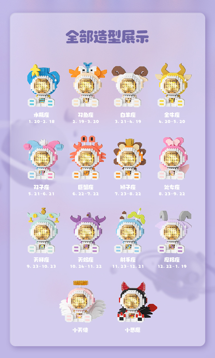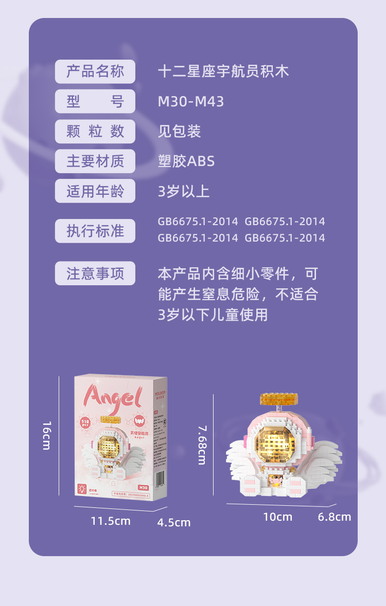 Mekensm 미세 입자 조립 장난감 교육 레저 악마 천사 M30-M43 12 별자리 우주 비행사