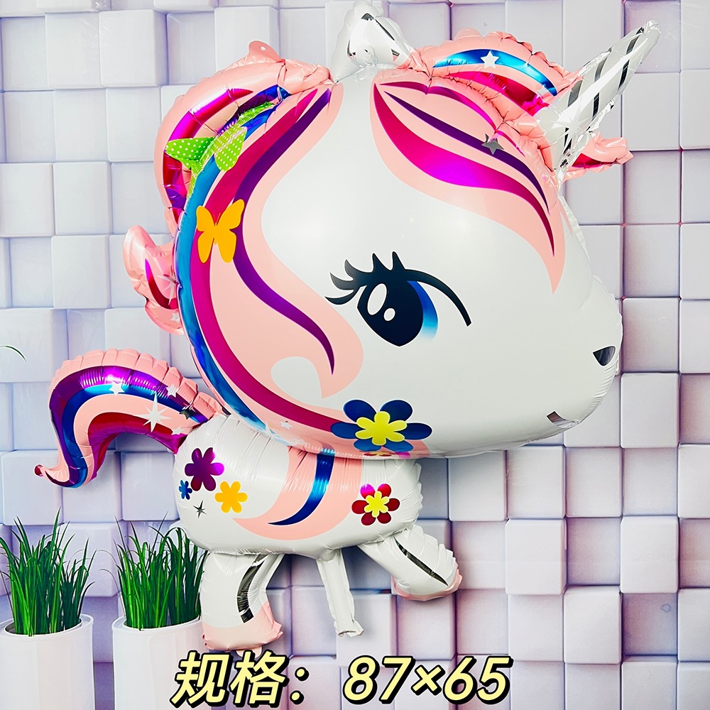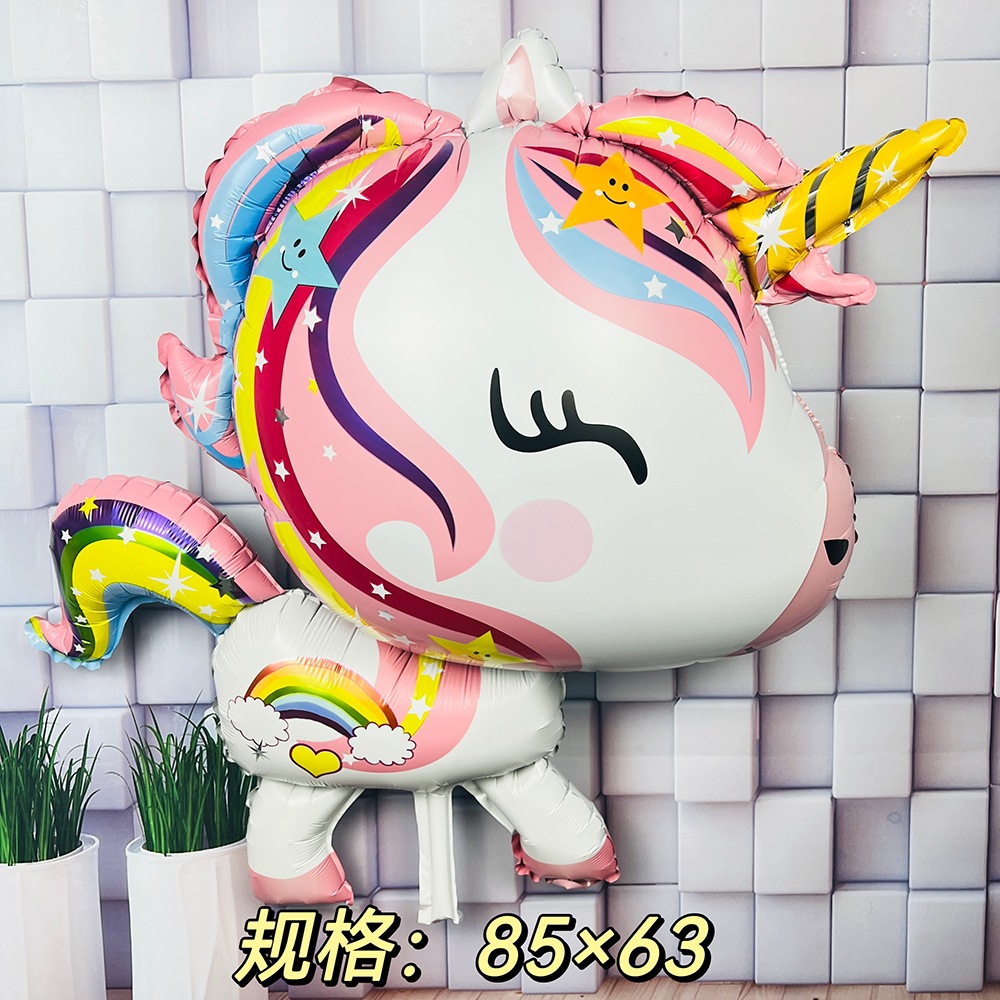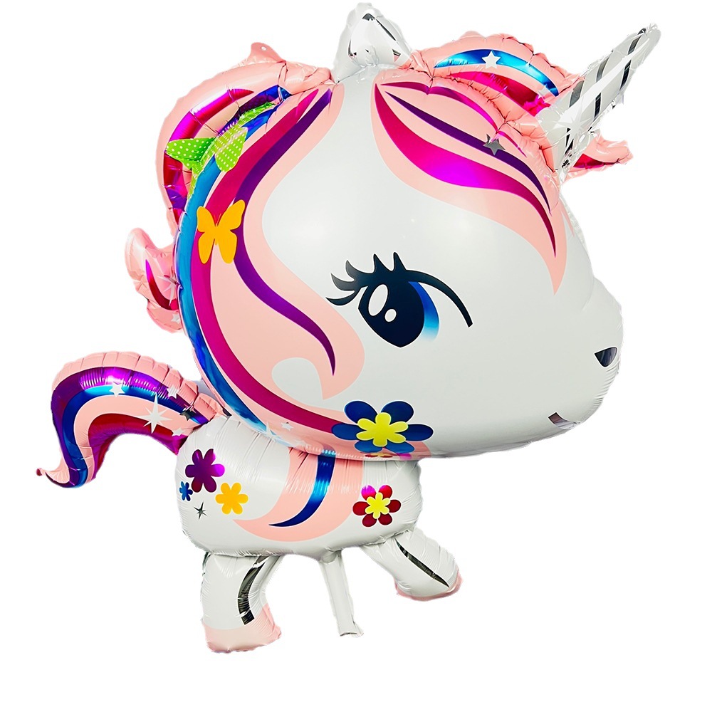 알루미늄 필름 유니콘 유니콘 머리 무지개 말 야외 떠 다니는 공기 공 우주 공 만화 풍선 배치