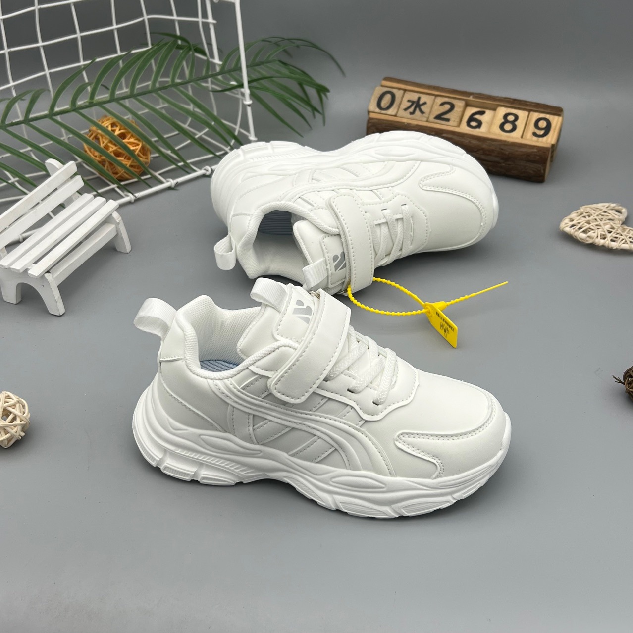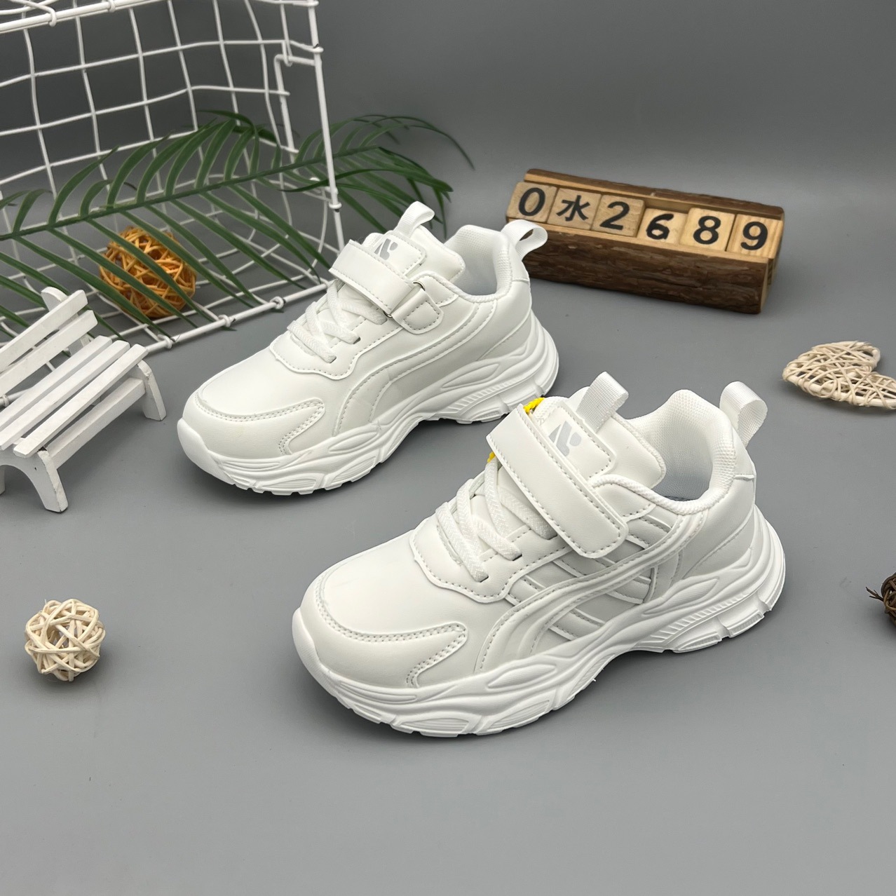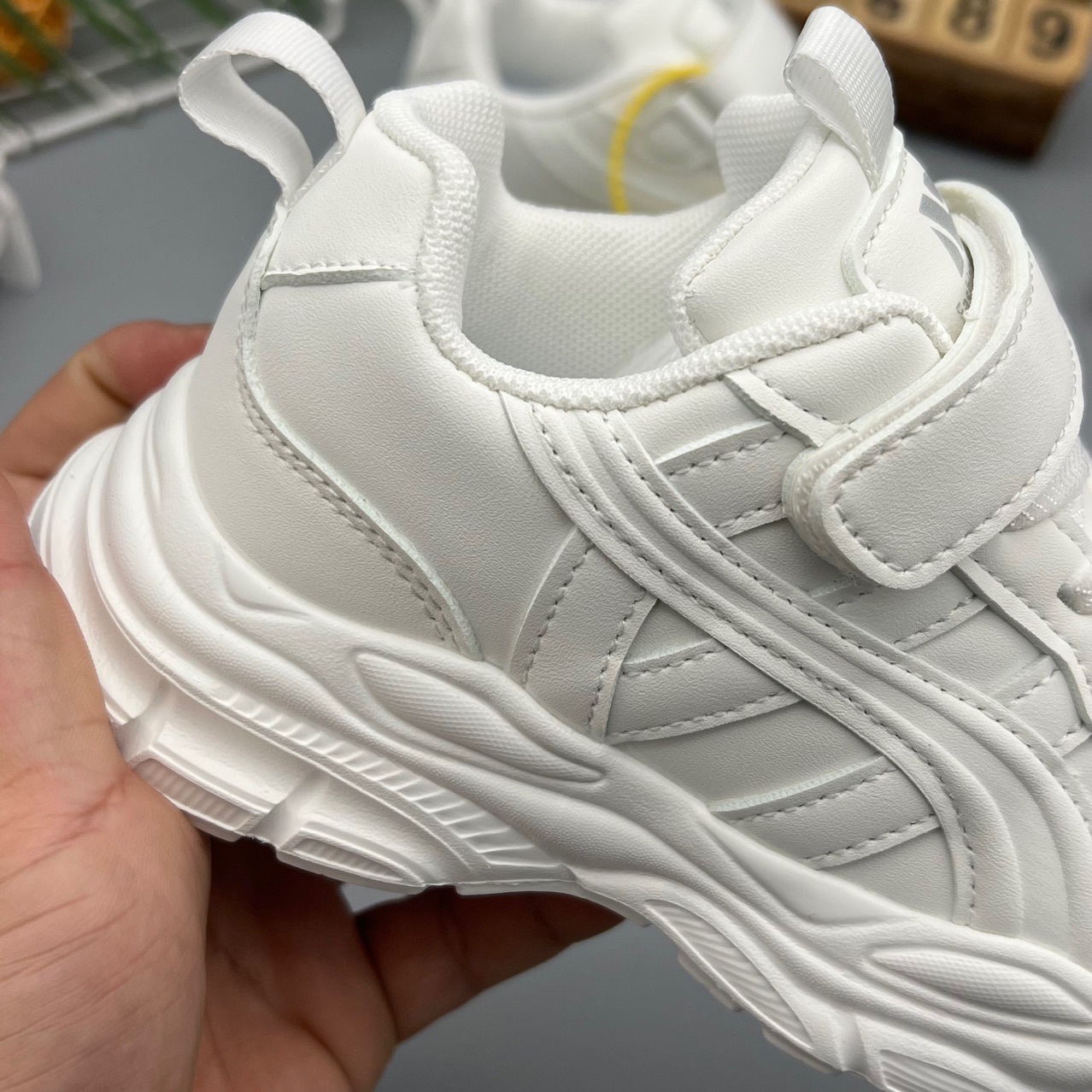 어린이 흰색 신발 여아 흰색 운동화 남아 가죽 방수 캐주얼 운동화 중학생 및 초등학생을위한 흰색 신발