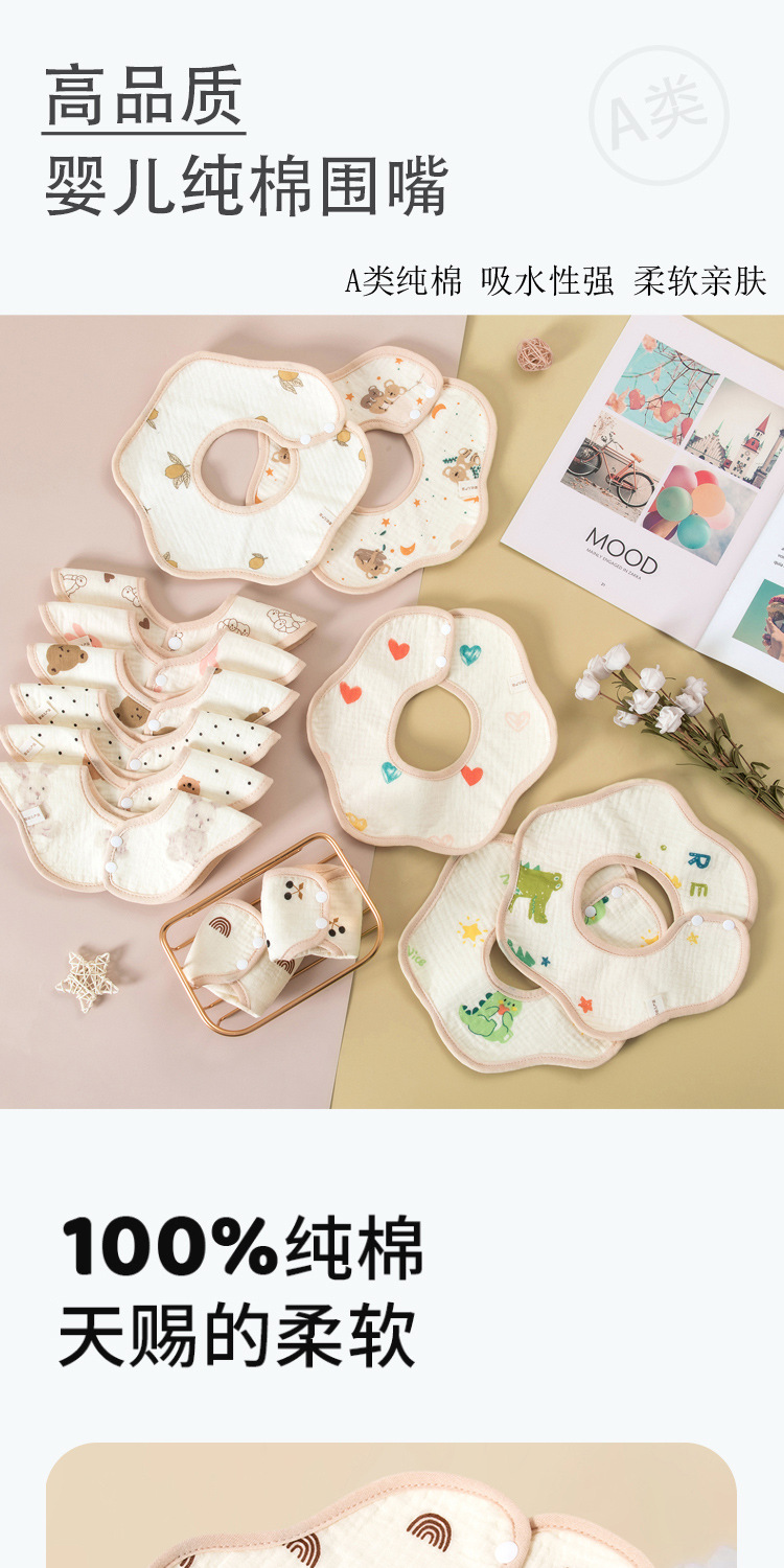 아기 클래스 턱받이 통기성 소프트 흡수성 미끄러운 수건 꽃잎 신생아 아기 다이닝 턱받이 회전 방수