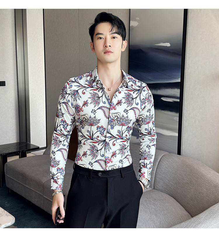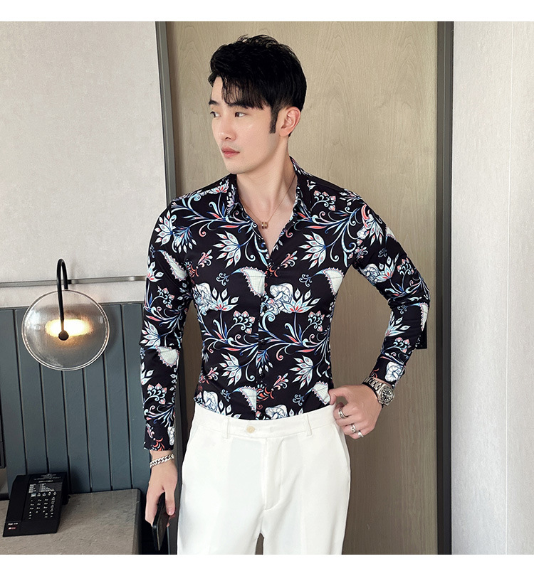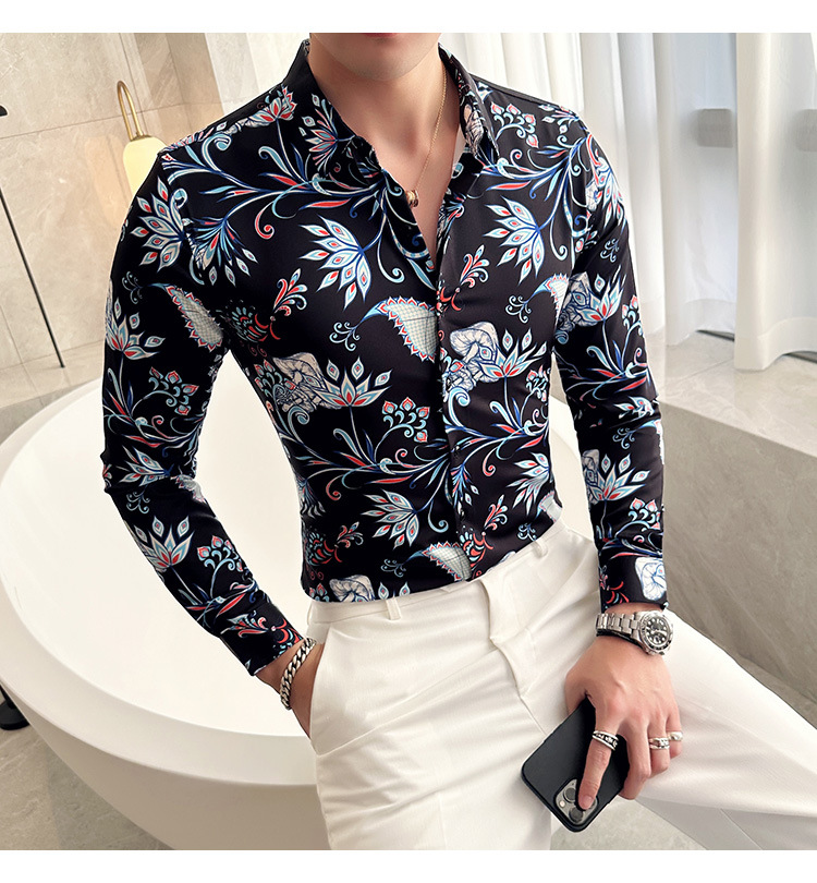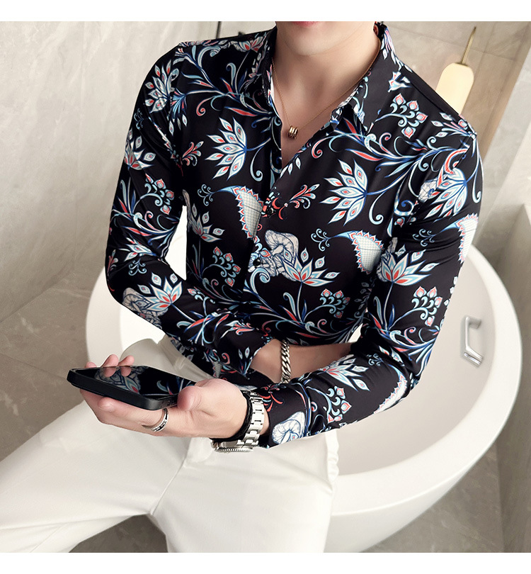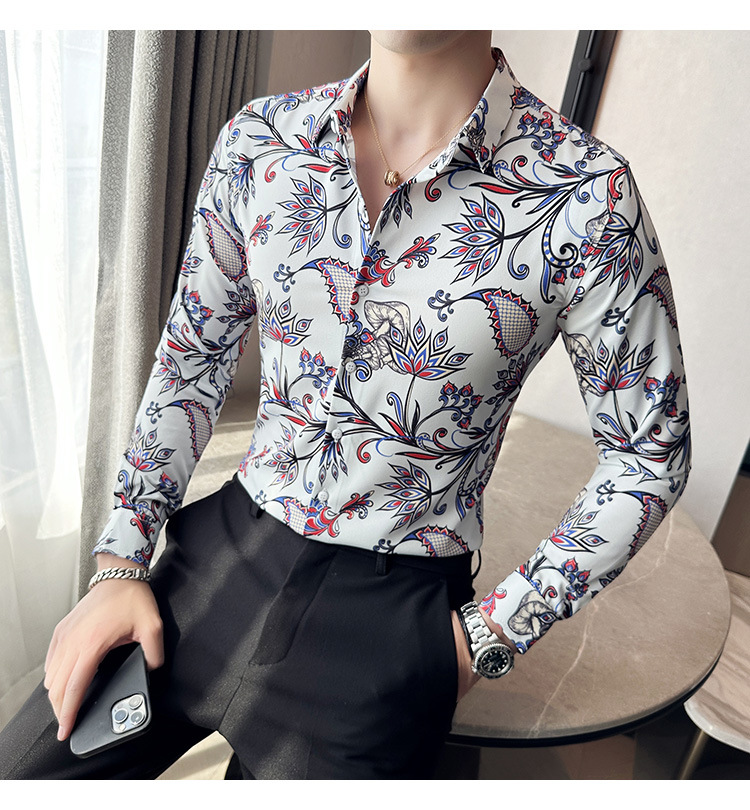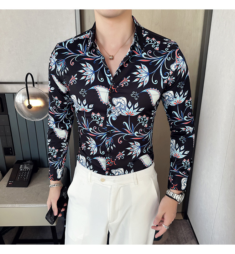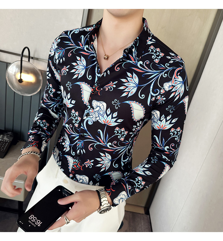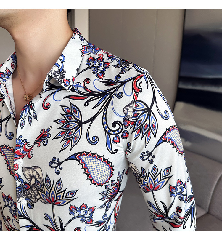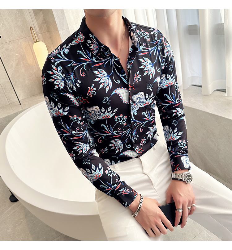 새로운 남성용 라펠 비 다림질 긴팔 셔츠 초가을 트렌드 디지털 프린트 캐주얼 슬림핏 셔츠 2935