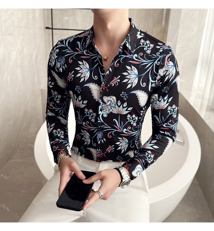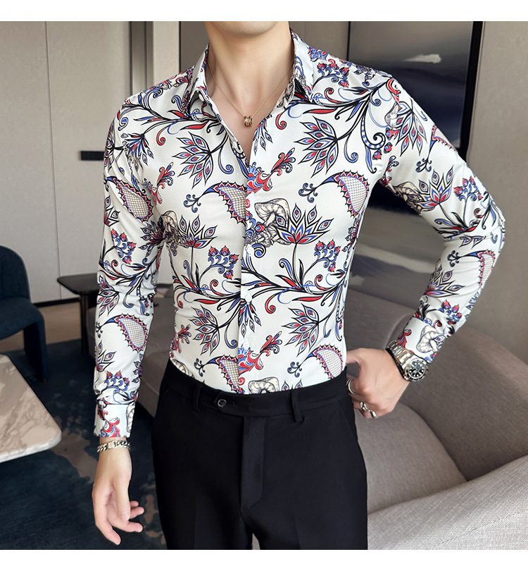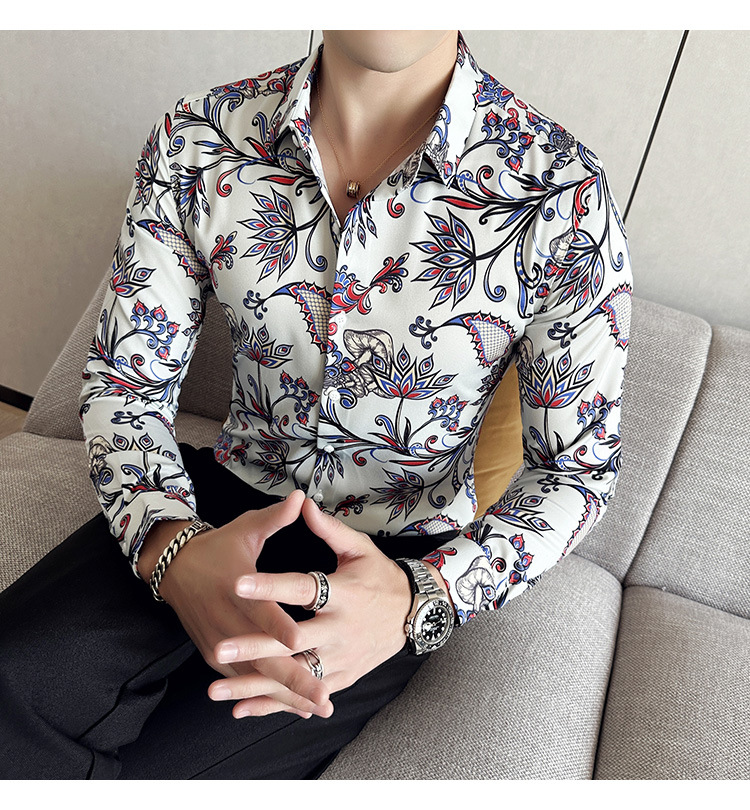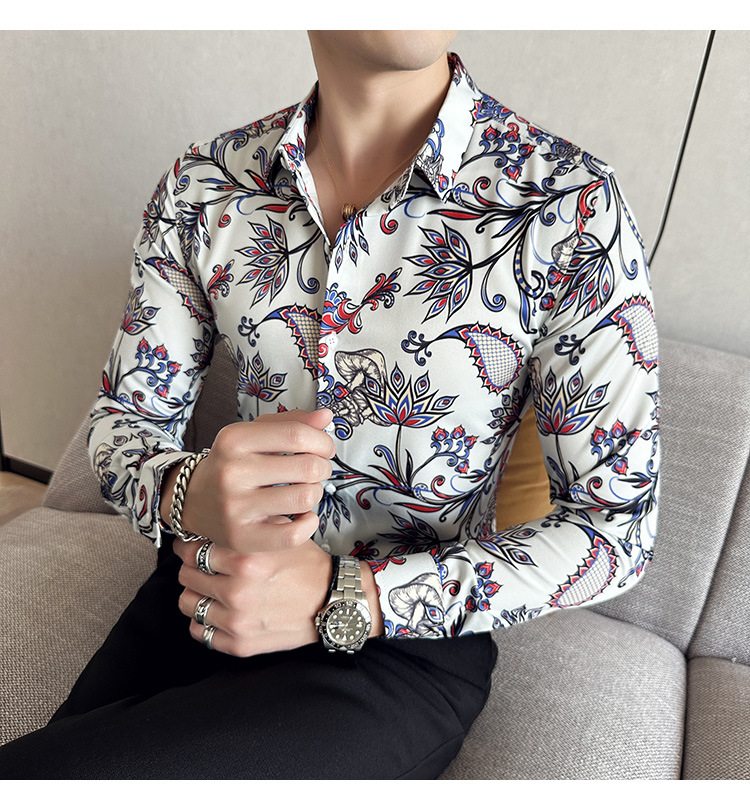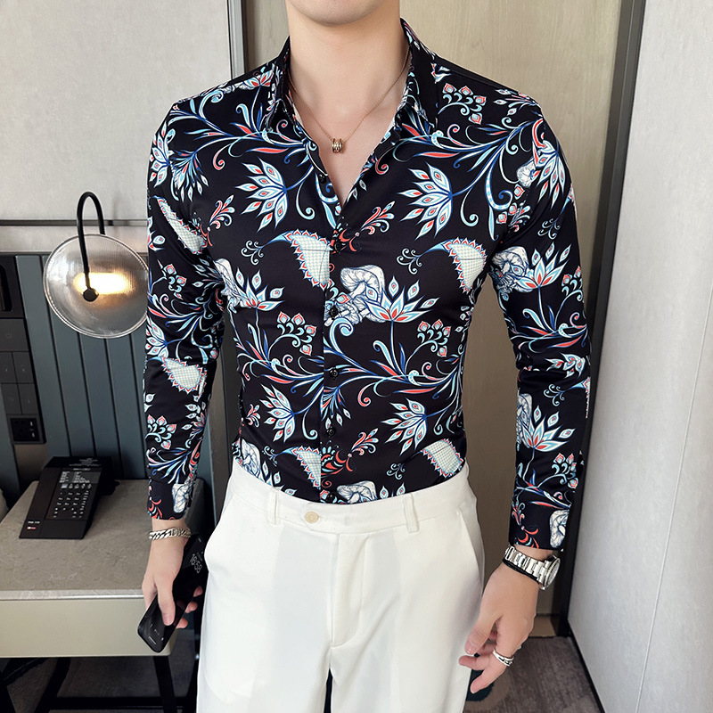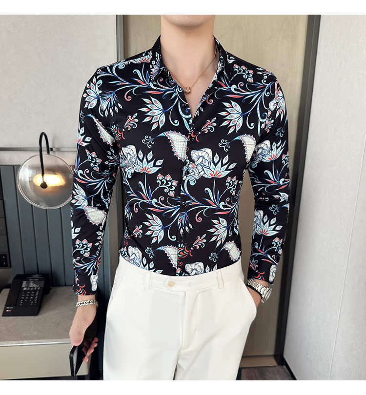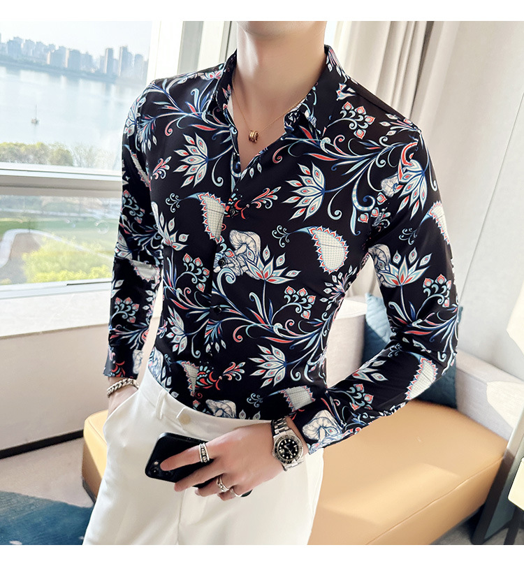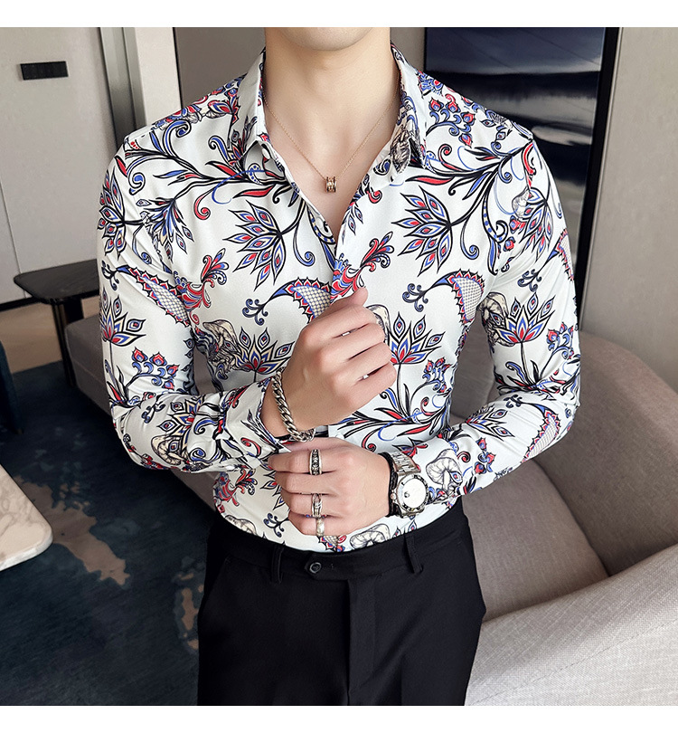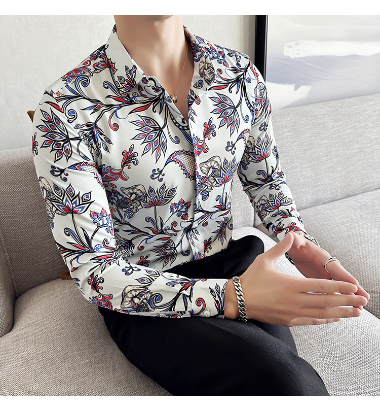 새로운 남성용 라펠 비 다림질 긴팔 셔츠 초가을 트렌드 디지털 프린트 캐주얼 슬림핏 셔츠 2935