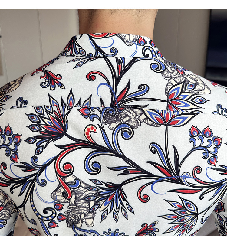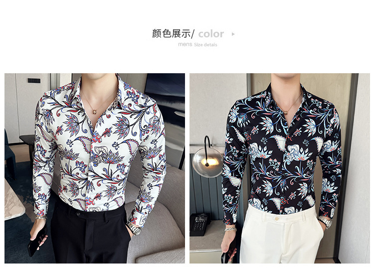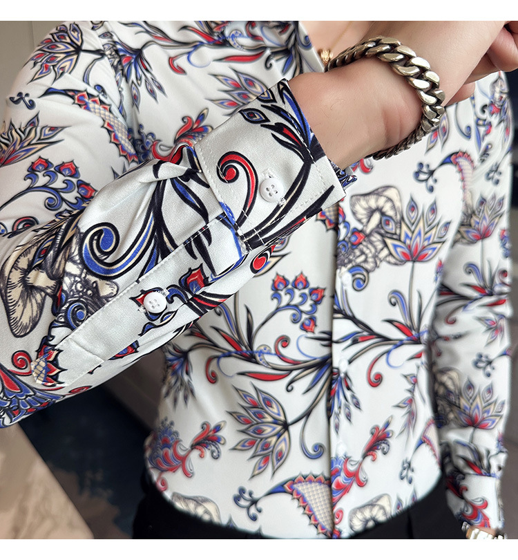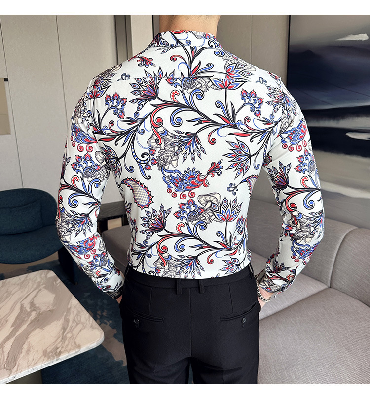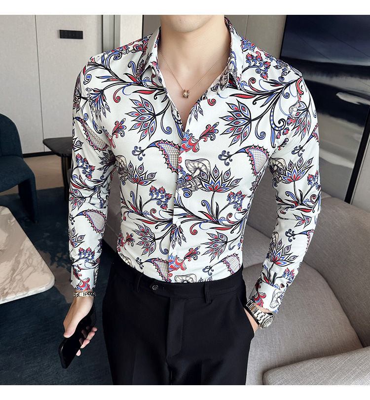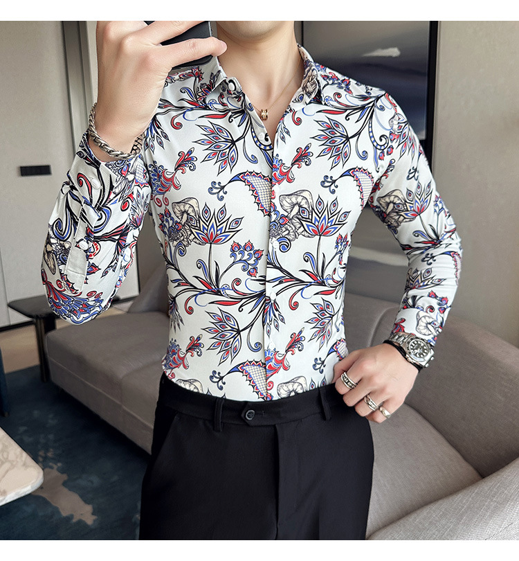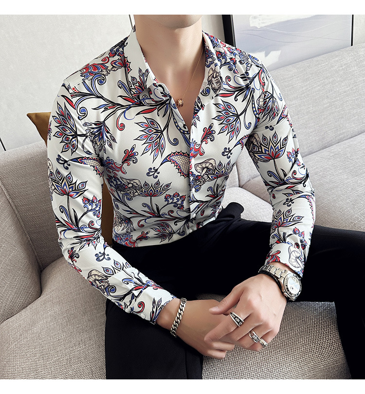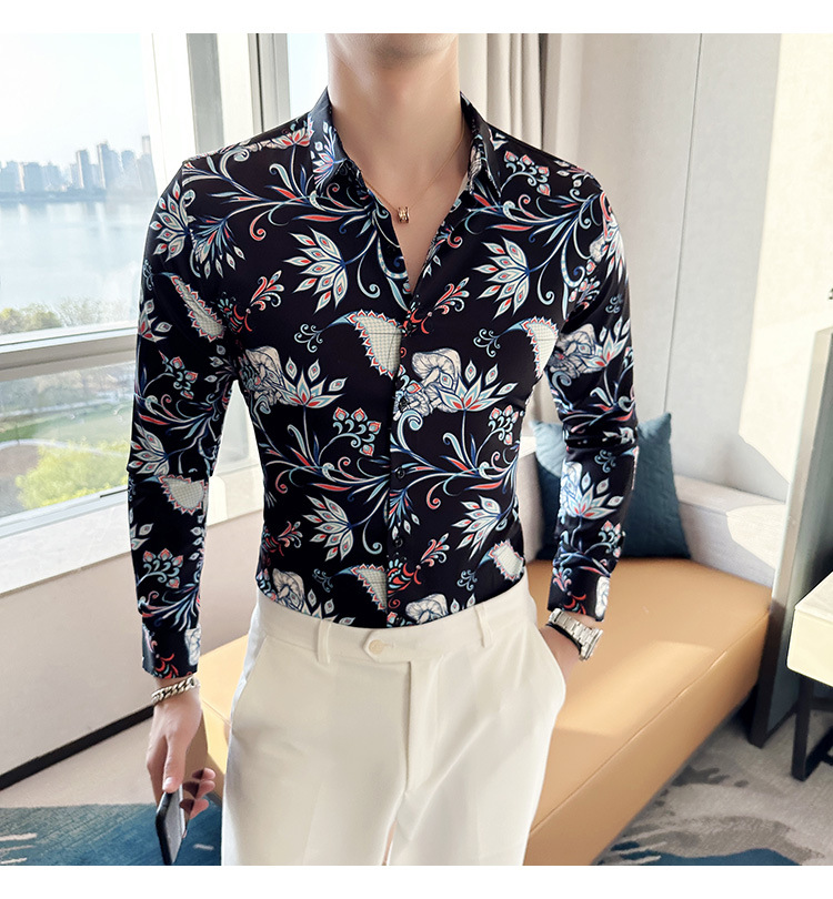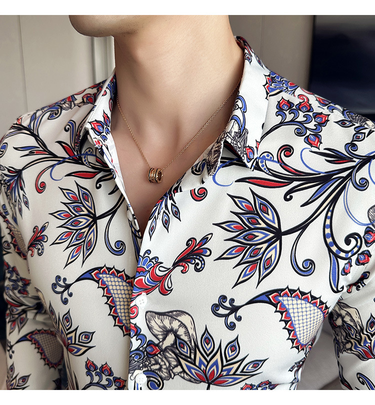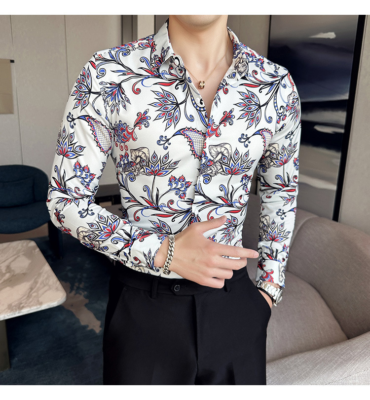 새로운 남성용 라펠 비 다림질 긴팔 셔츠 초가을 트렌드 디지털 프린트 캐주얼 슬림핏 셔츠 2935