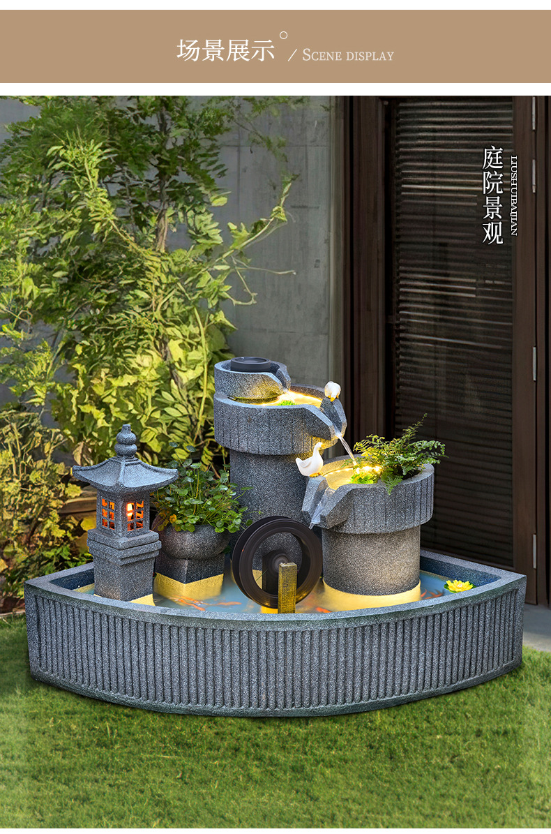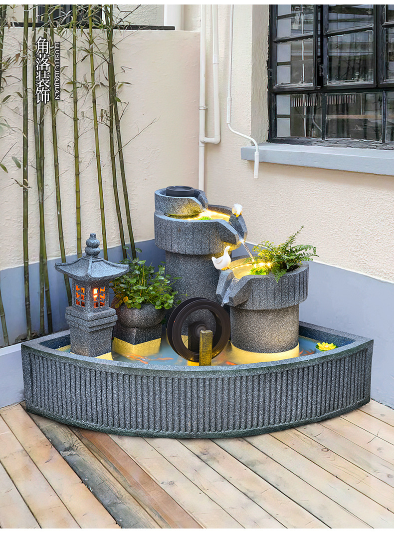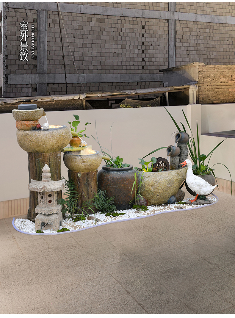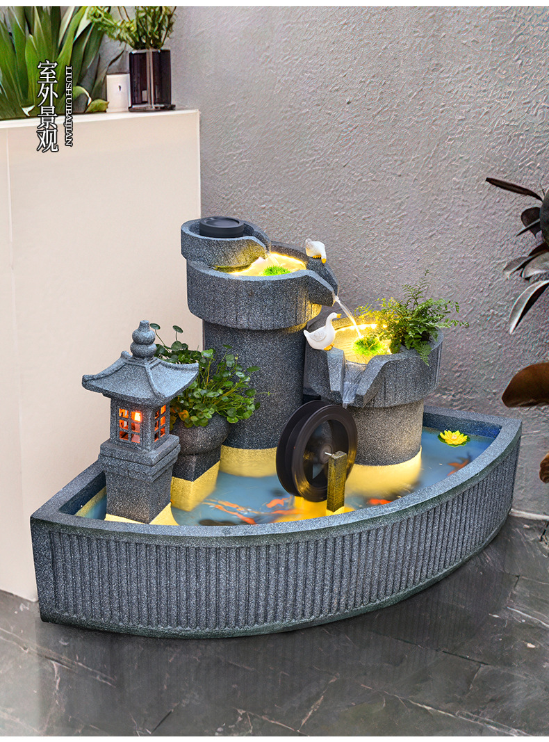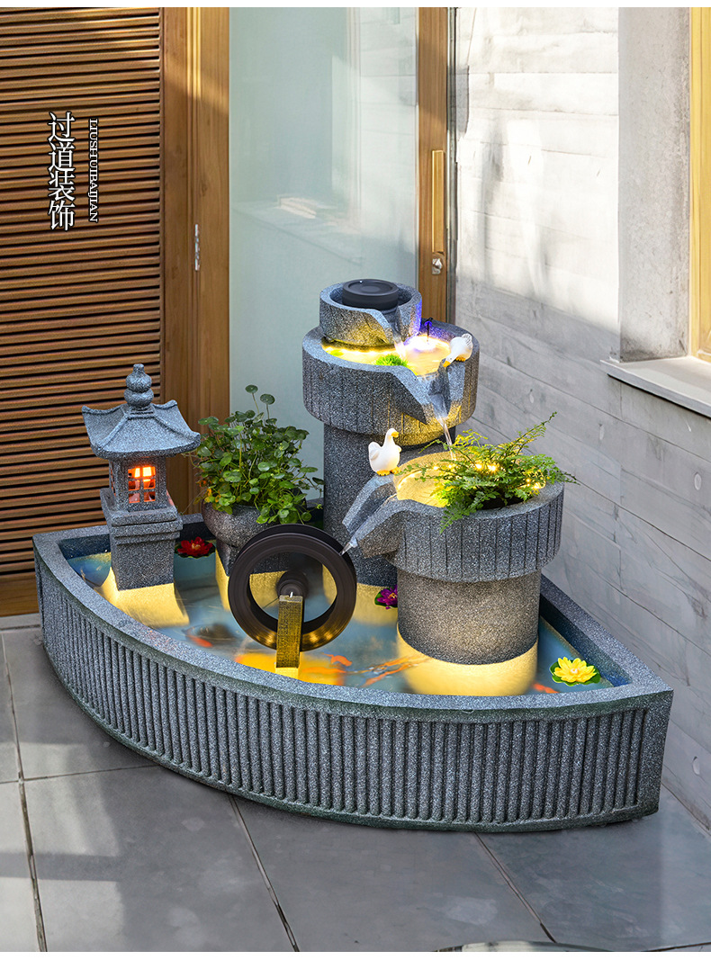 목가적 인 정원 안뜰 야외 테라스 rockery 흐르는 물 분수 물고기 수영장 물고기 탱크 발코니 장식 조경 장식품