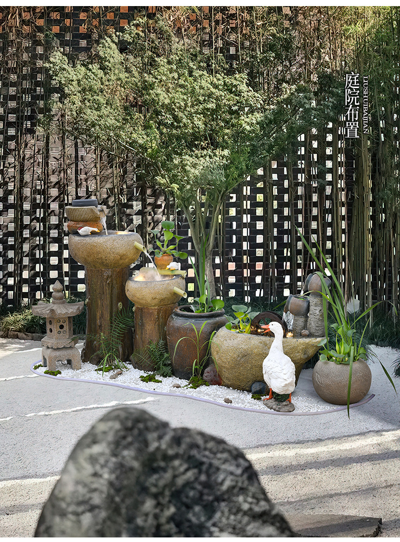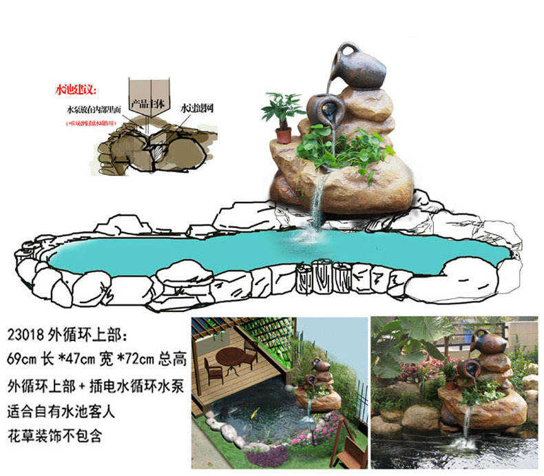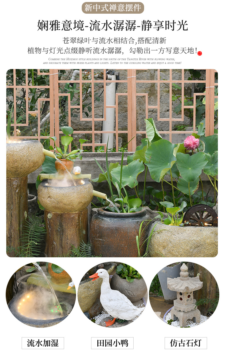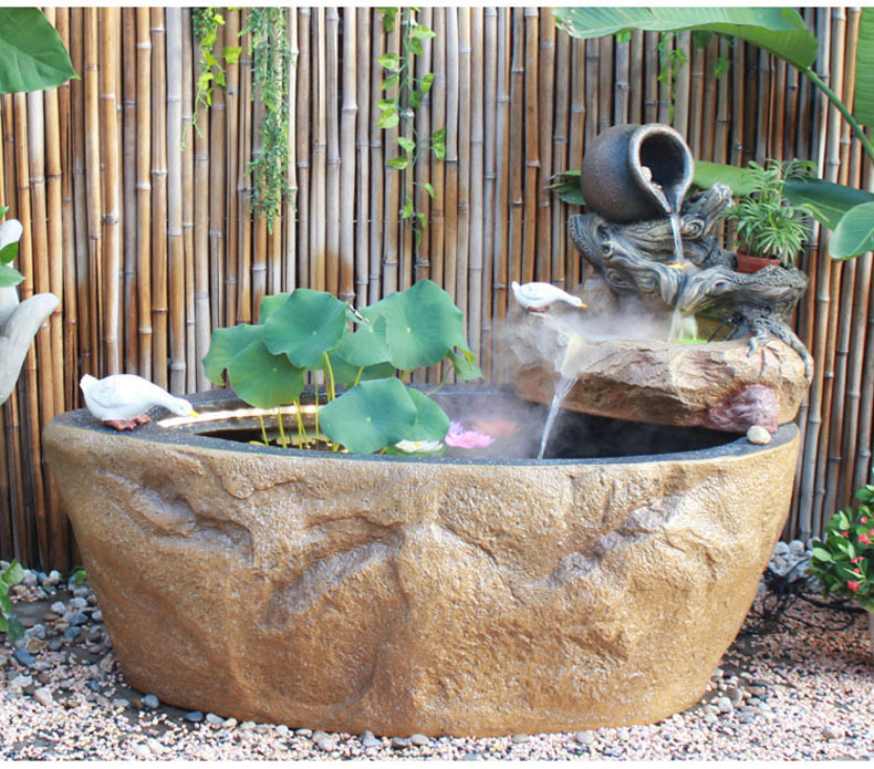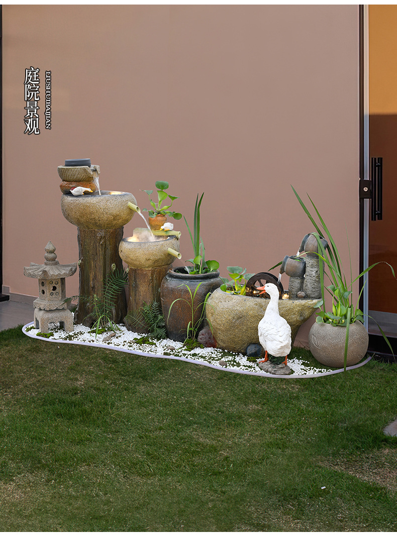 목가적 인 정원 안뜰 야외 테라스 rockery 흐르는 물 분수 물고기 수영장 물고기 탱크 발코니 장식 조경 장식품