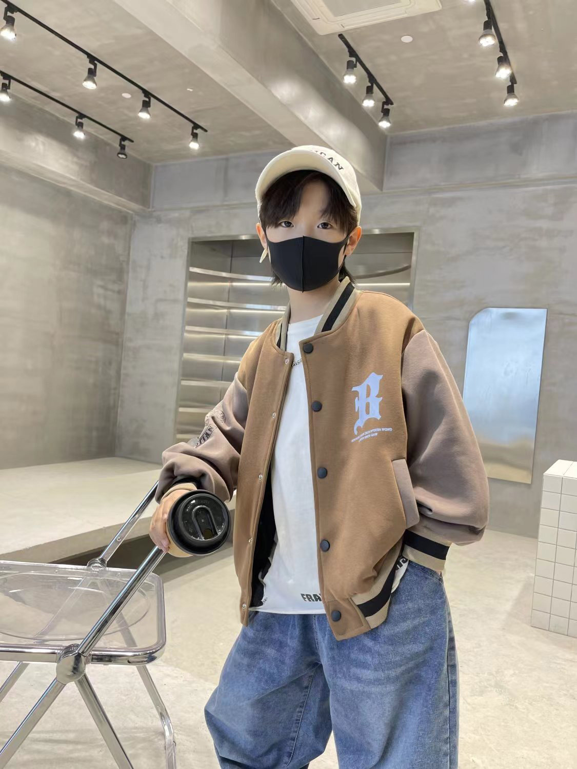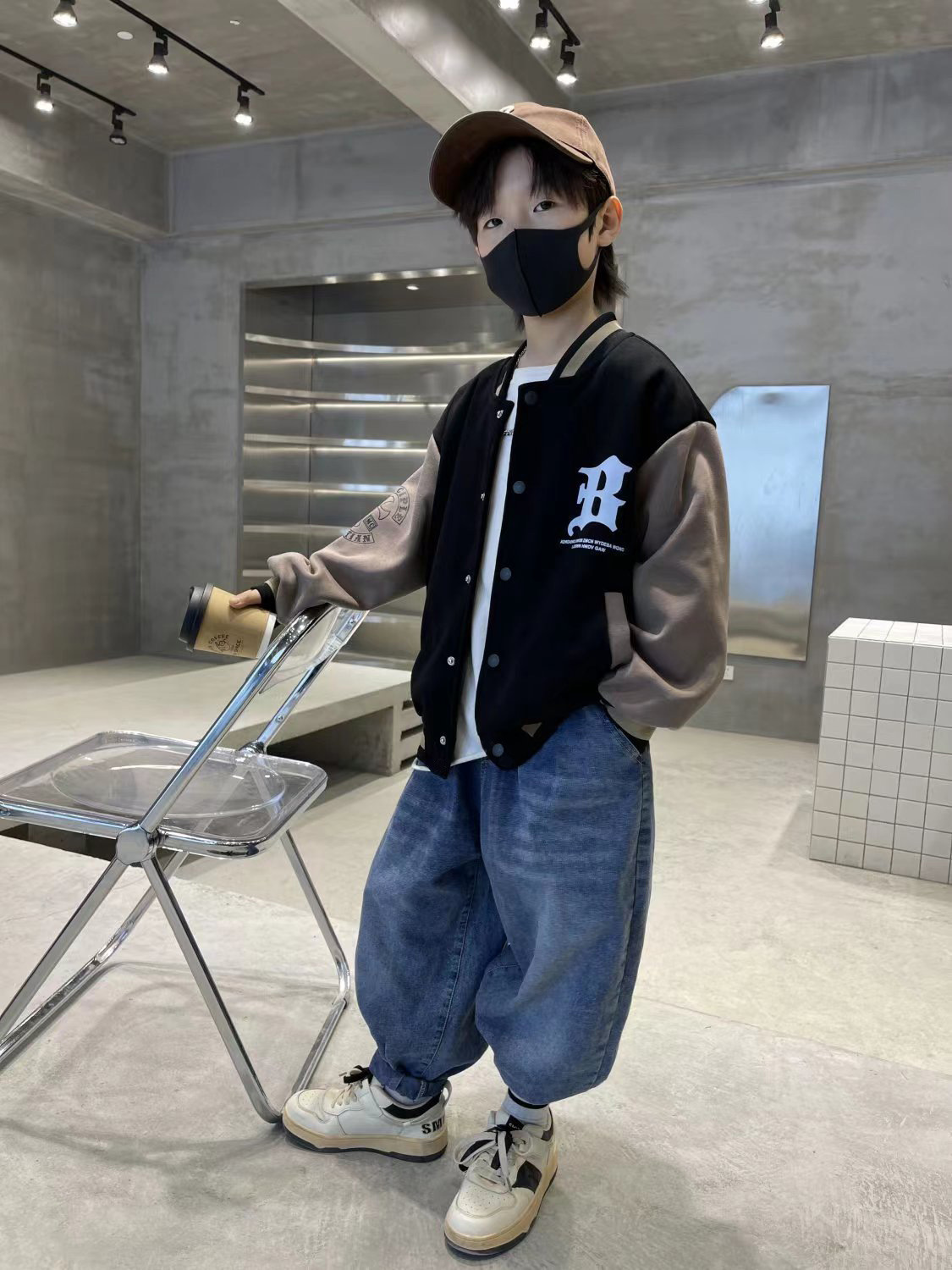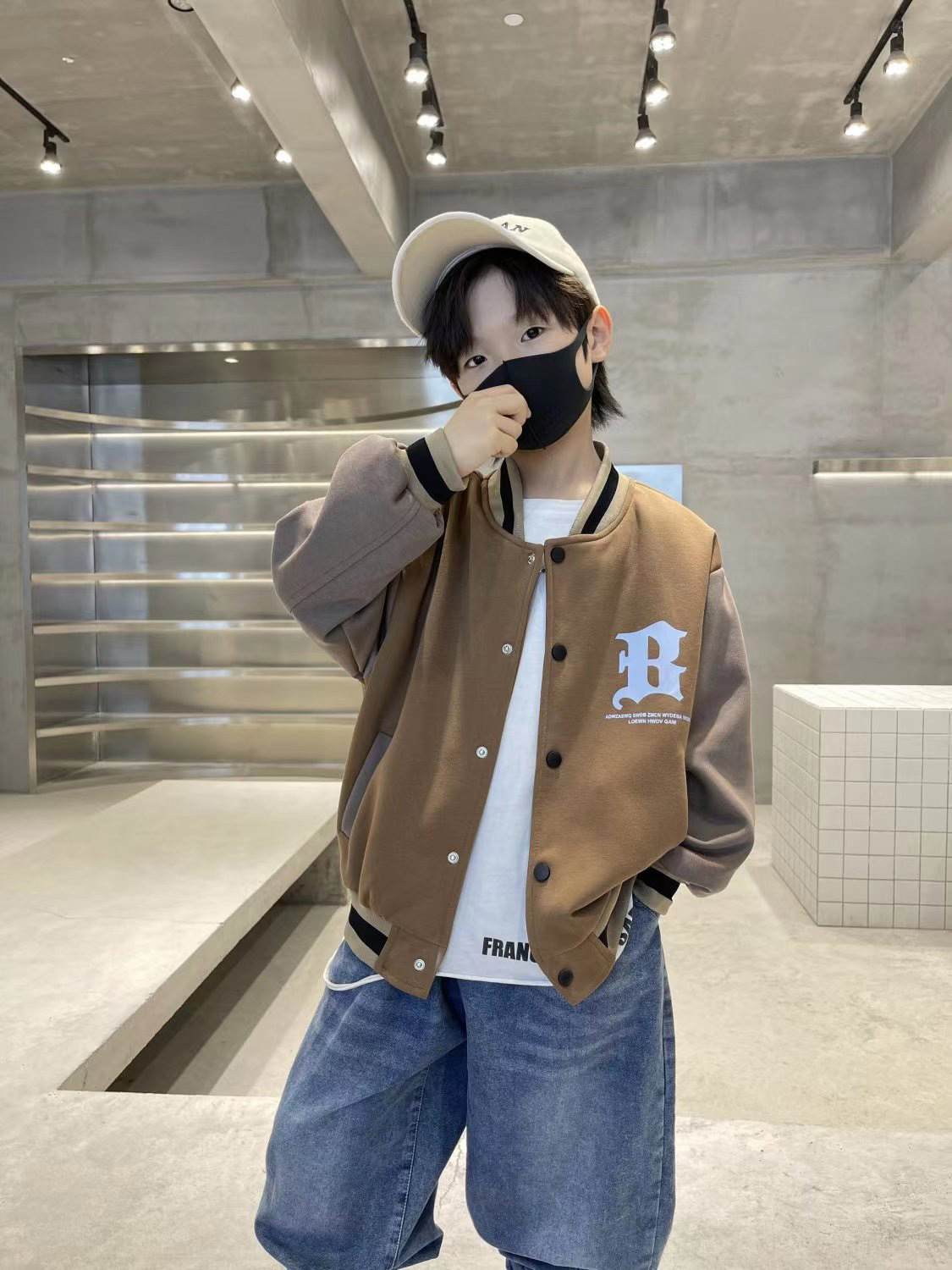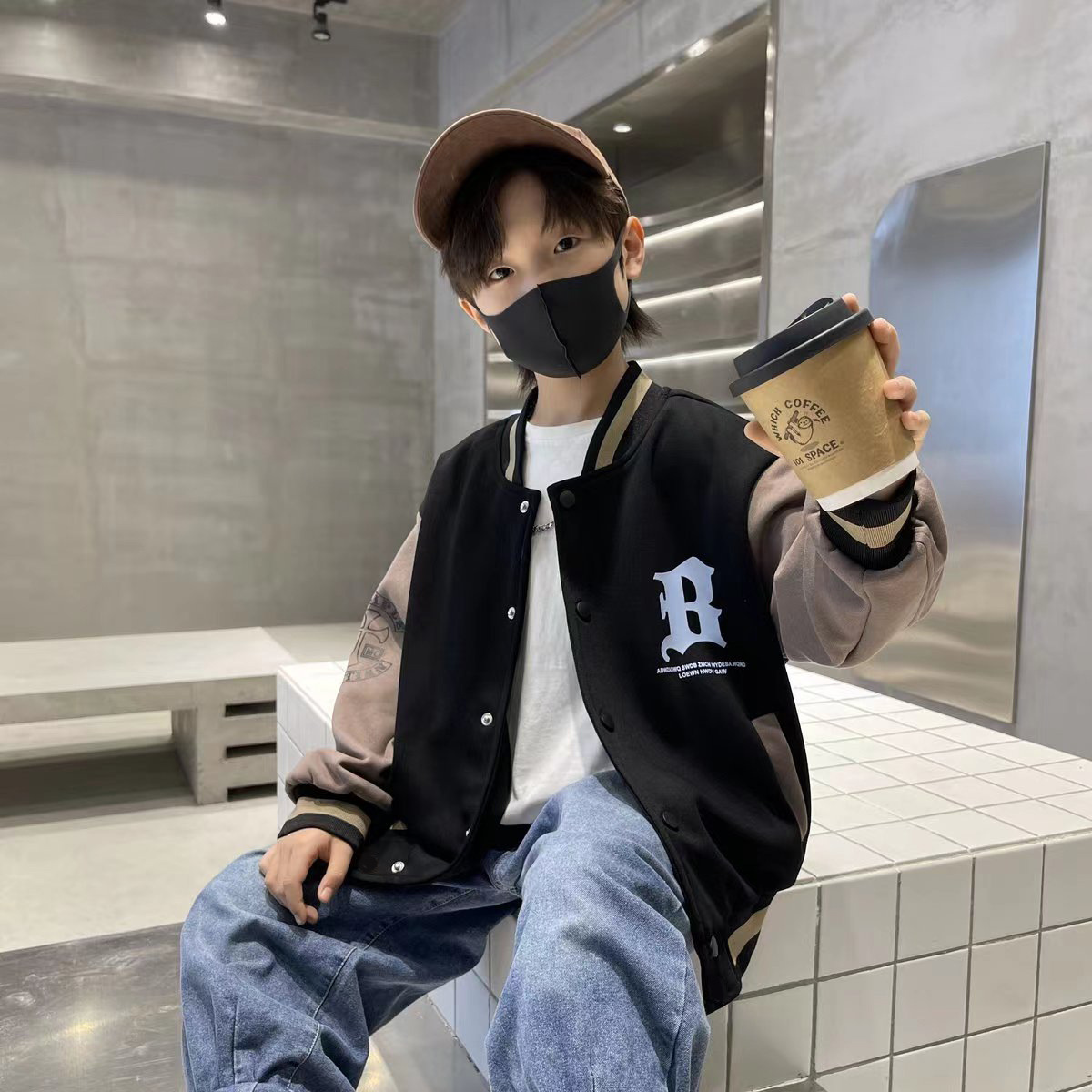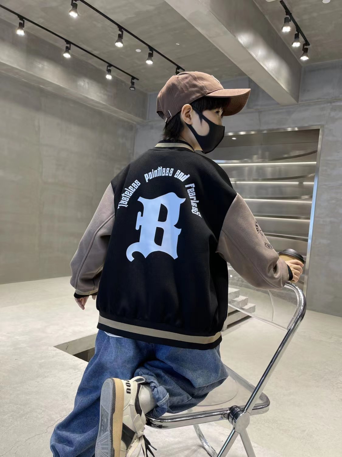 2025 가을 겨울 트렌디한 레터링 야구복 상의 남녀 아동용 컬리지 스타일 루즈핏 캐주얼 싱글 버튼 스웨트셔츠 자켓스토어 가기