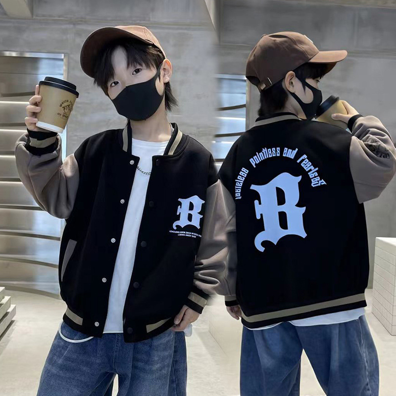 2025 가을 겨울 트렌디한 레터링 야구복 상의 남녀 아동용 컬리지 스타일 루즈핏 캐주얼 싱글 버튼 스웨트셔츠 자켓