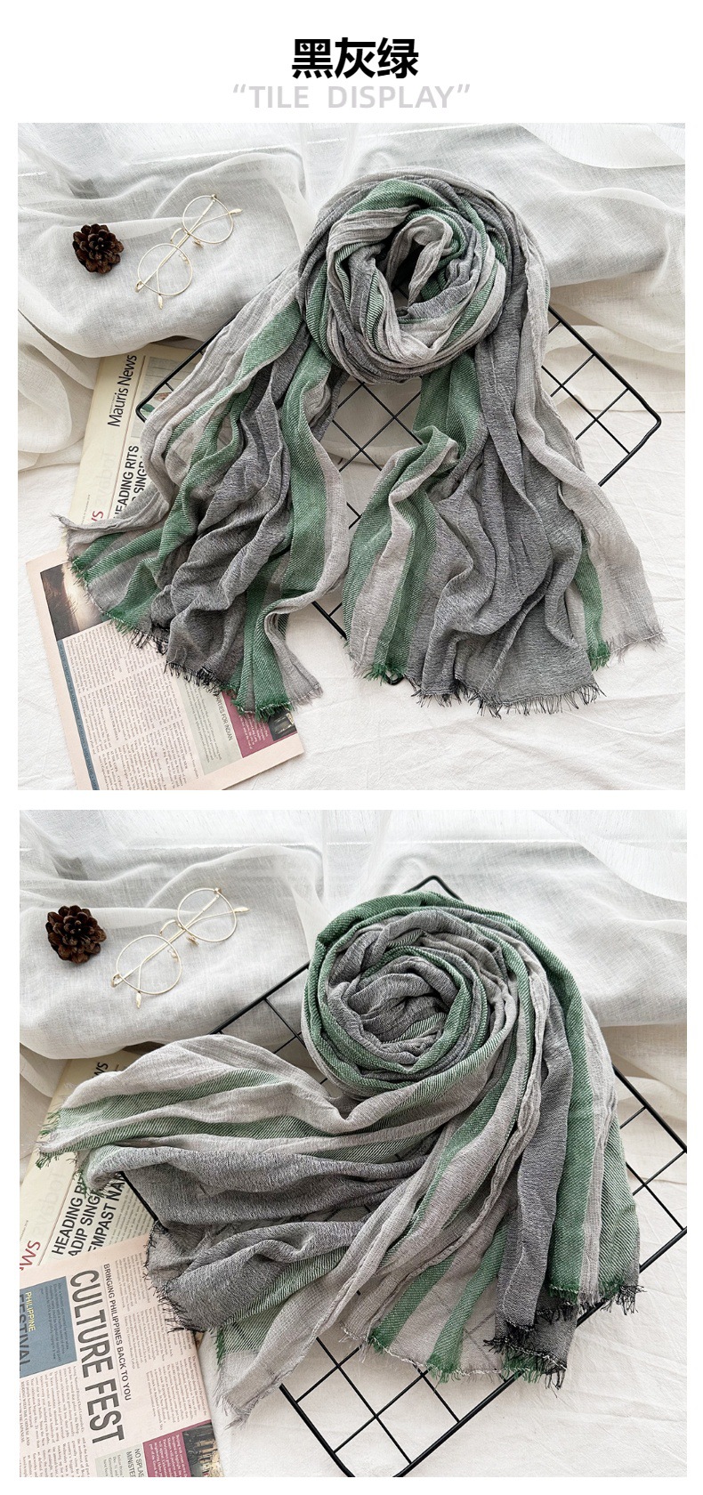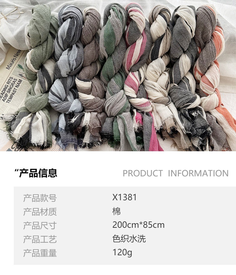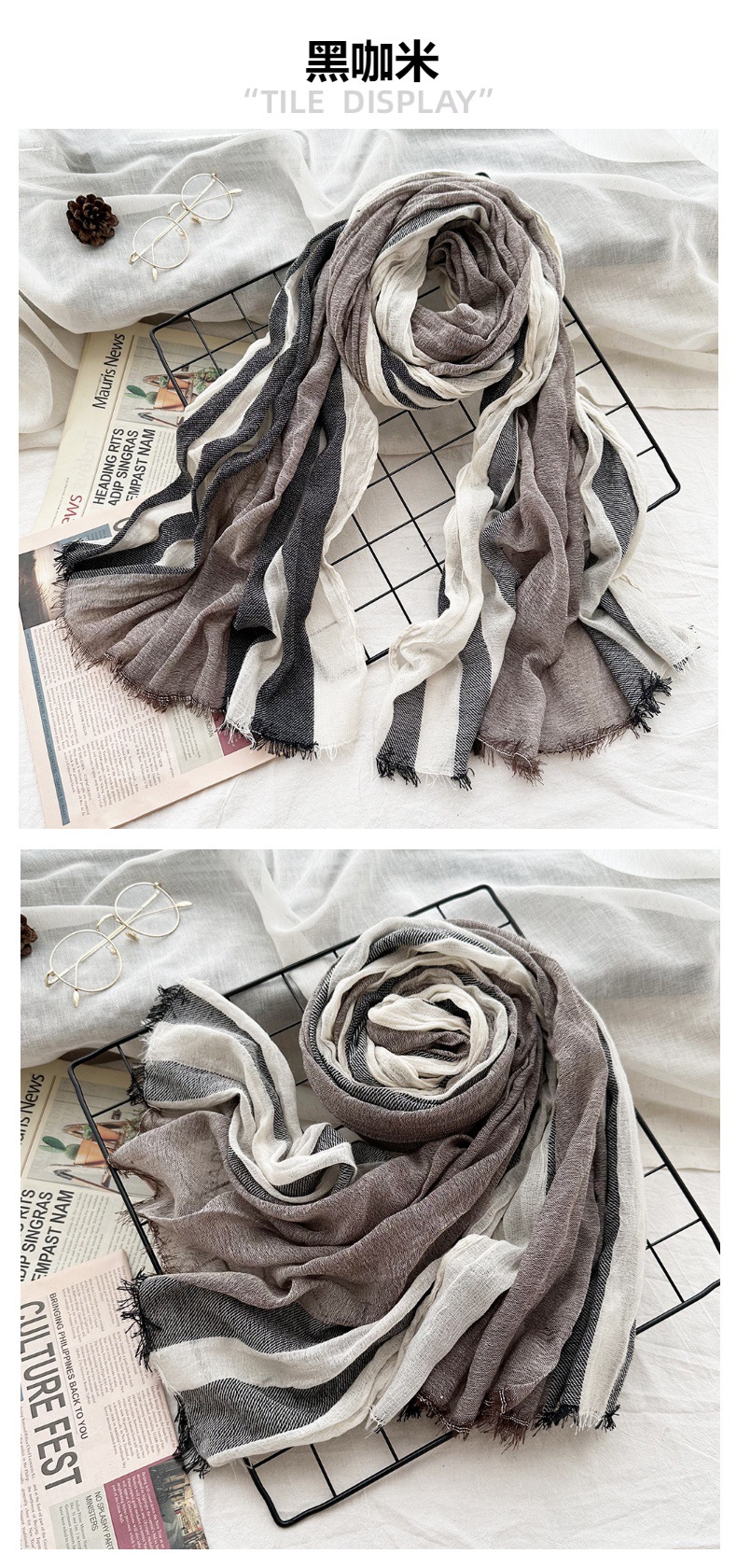2023 숙녀 스카프 가을과 겨울 면화 줄무늬 따뜻한 스카프 새로운 원사 염색 조커 스카프 얇은 머리카락 세대