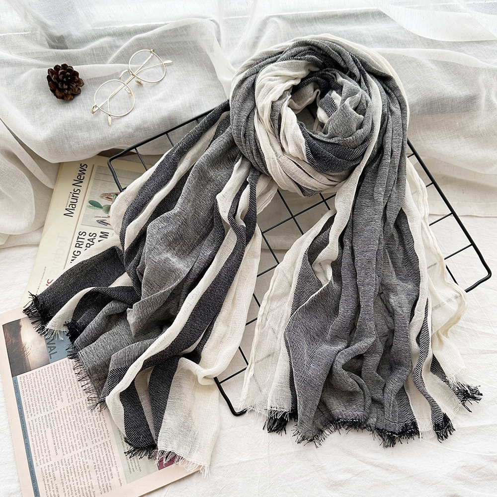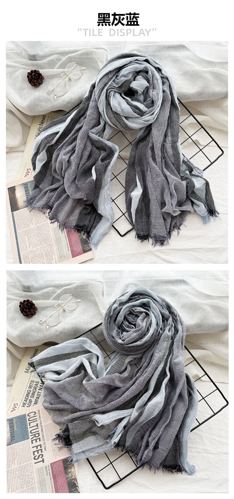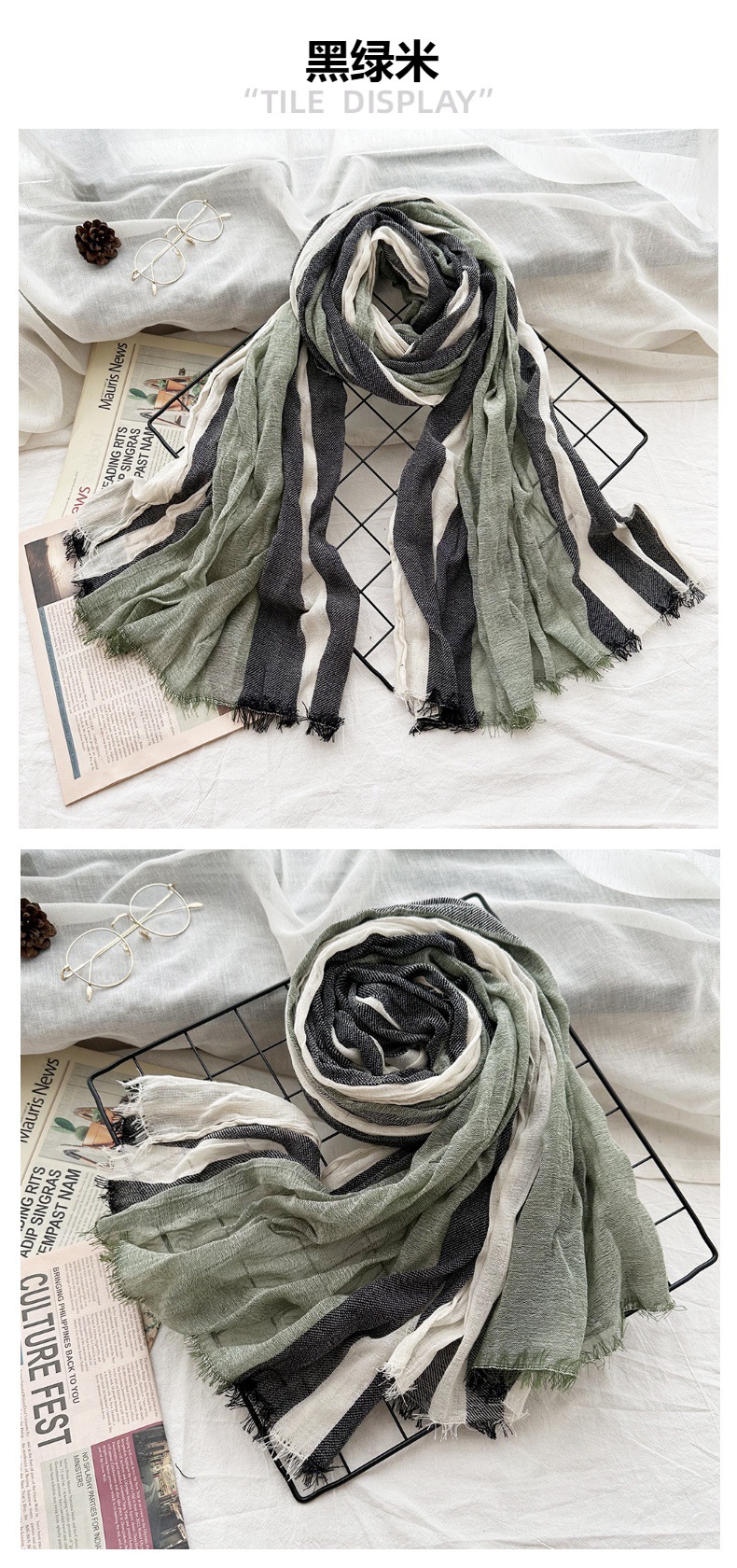 2023 숙녀 스카프 가을과 겨울 면화 줄무늬 따뜻한 스카프 새로운 원사 염색 조커 스카프 얇은 머리카락 세대