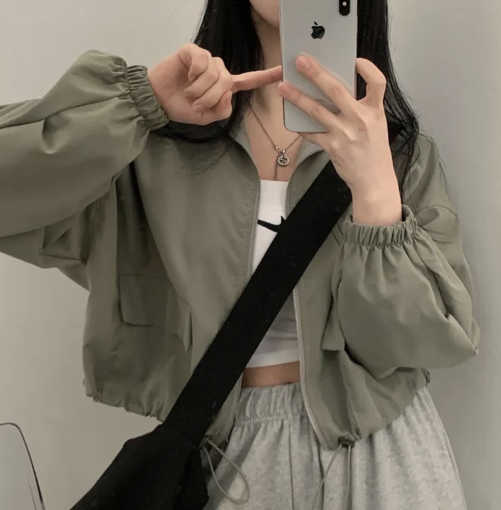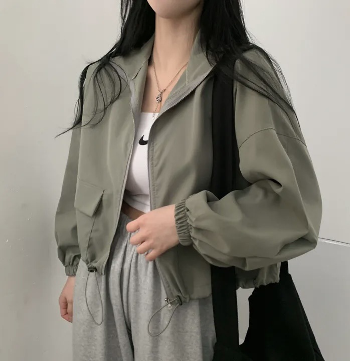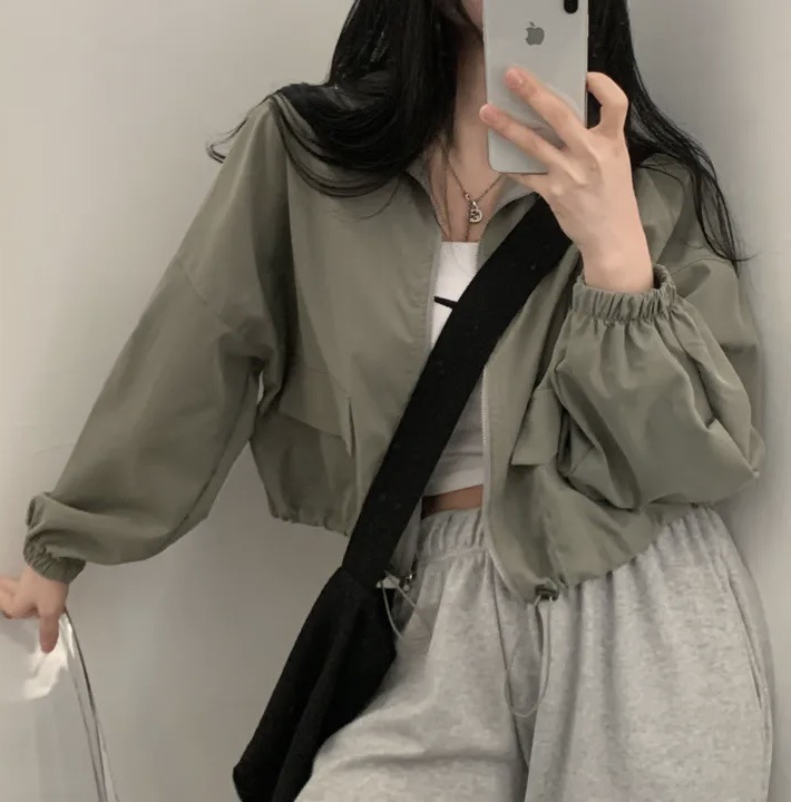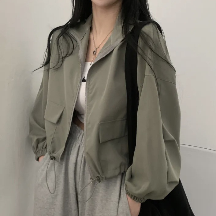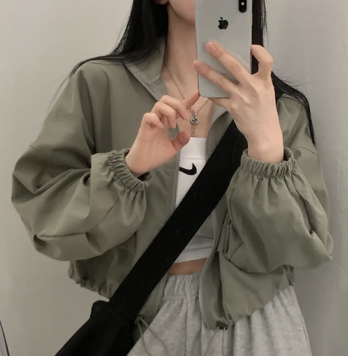 빈티지 툴링 졸라매는 끈 짧은 야구 세트 재킷 코트 여자의 높은 감각 틈새 복장 디자인 감각스토어 가기
