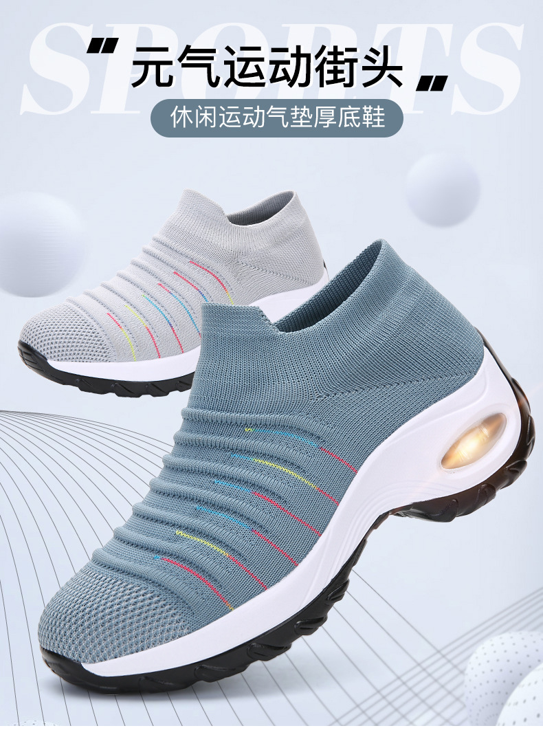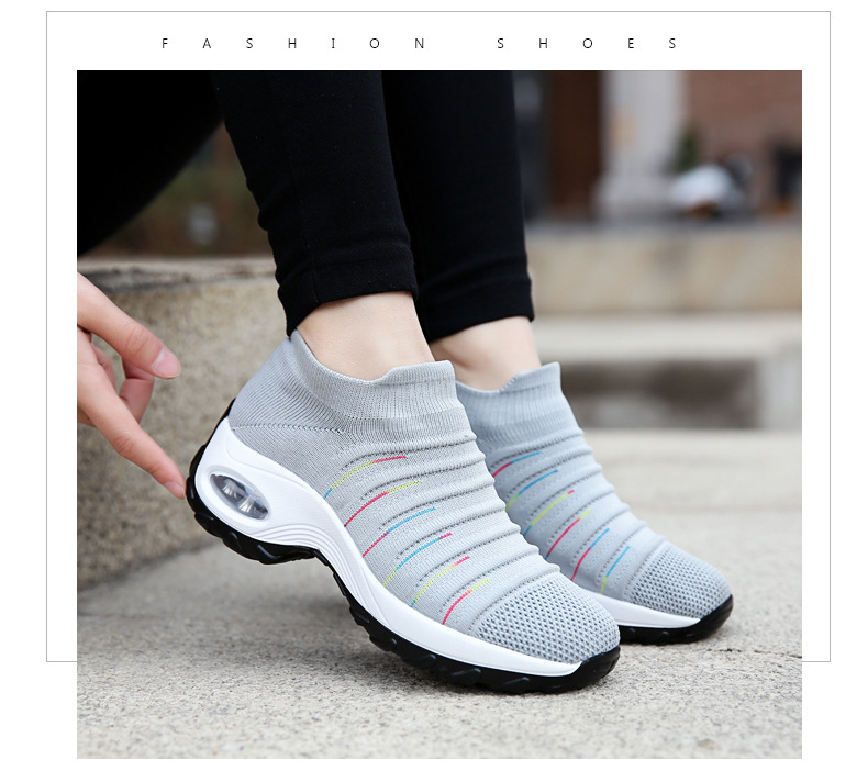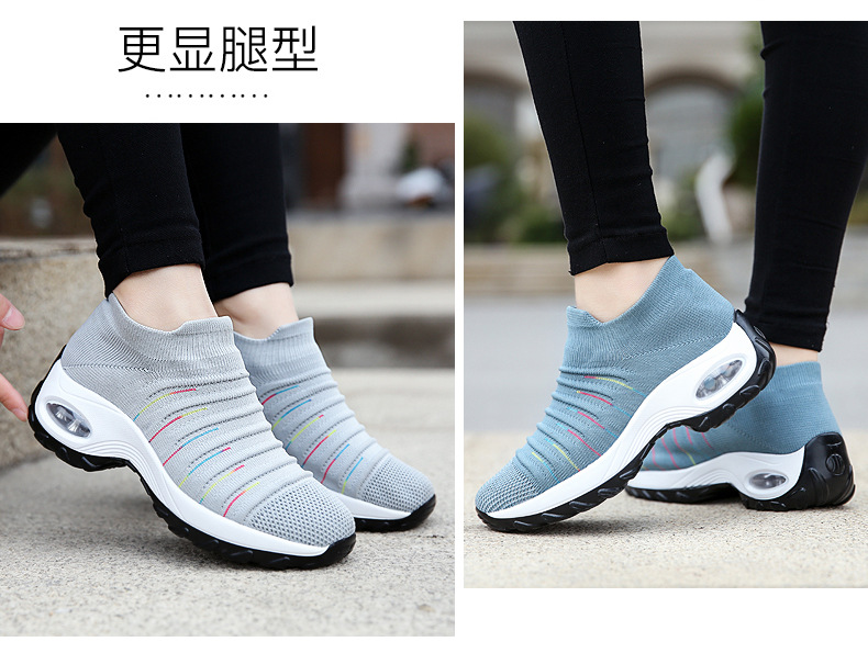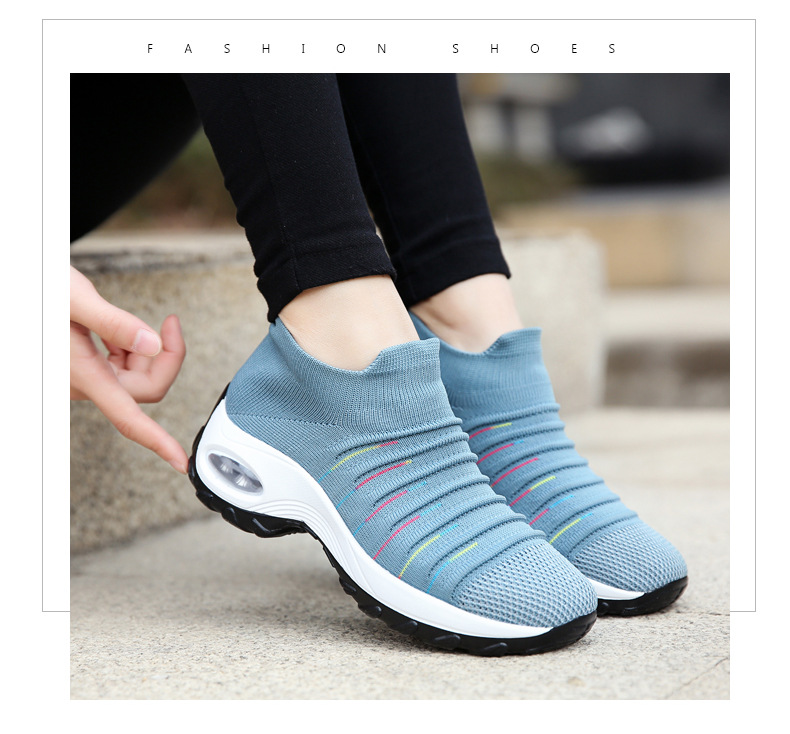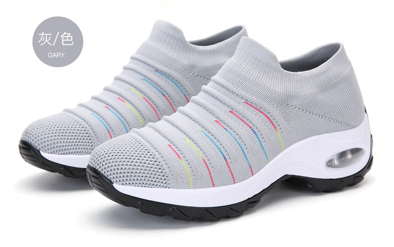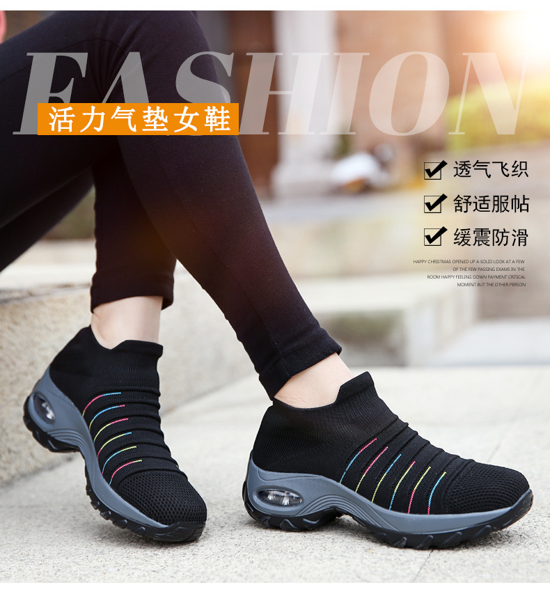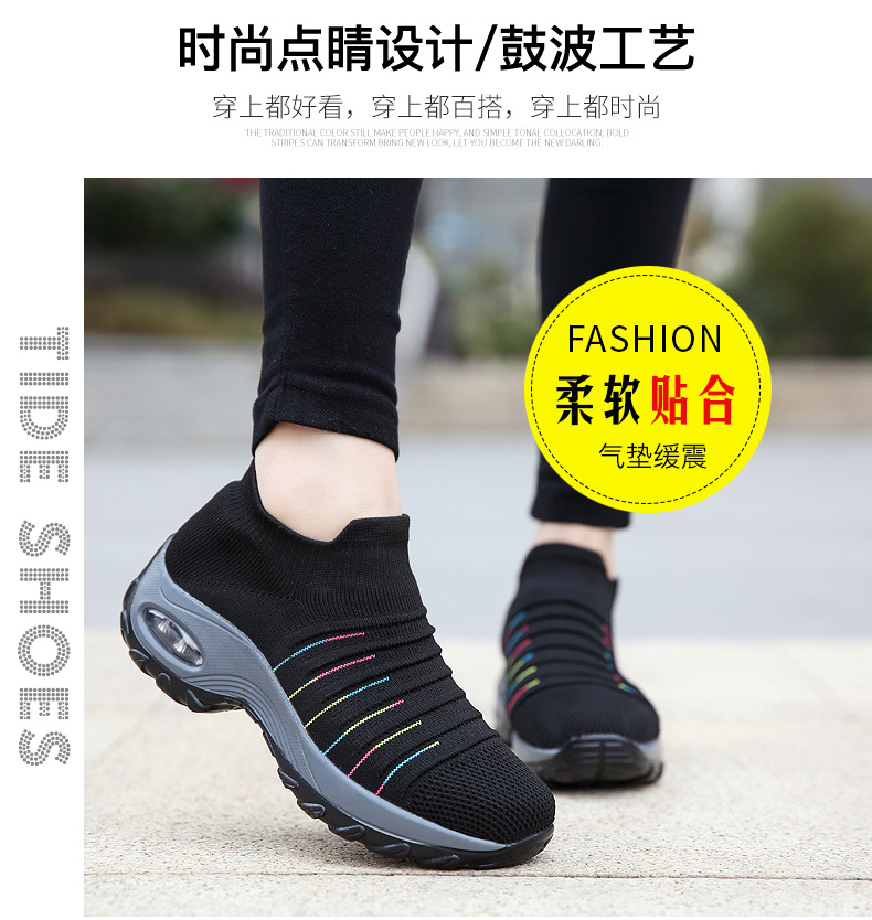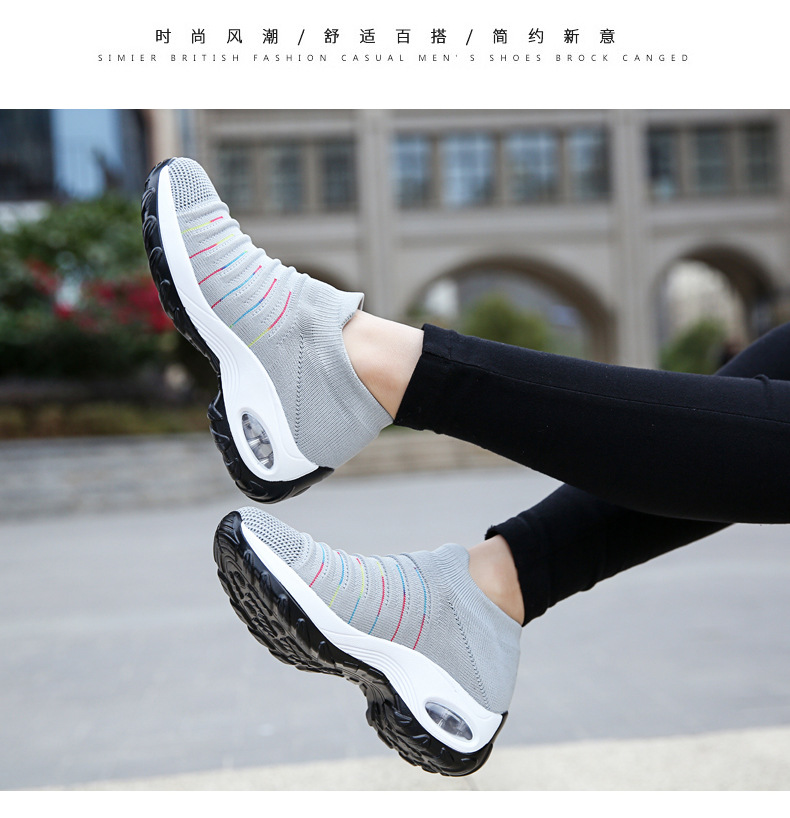 새로운 크로스 국경 뜨거운 판매 전자 상거래 플러스 사이즈 여성 신발 에어 쿠션 비행 짠 운동화 플레이버 신발 패션 캐주얼 신발 양말 신발