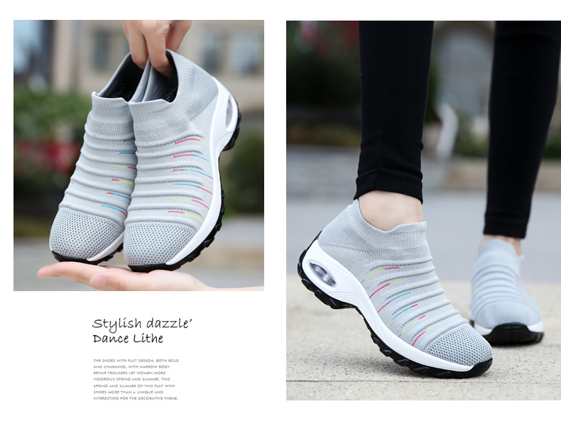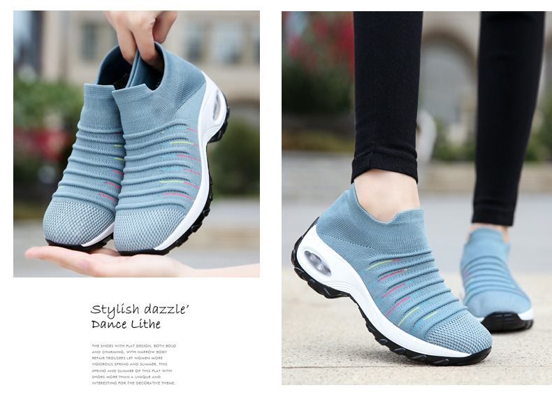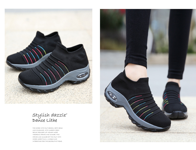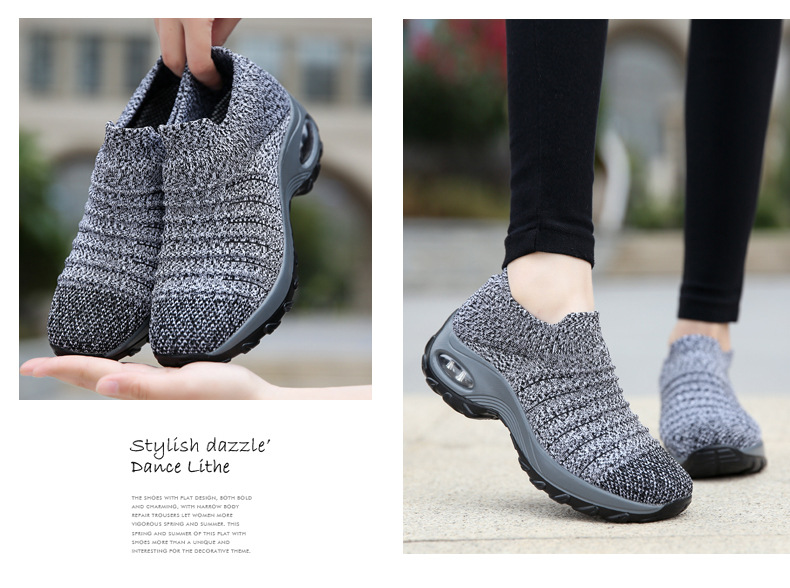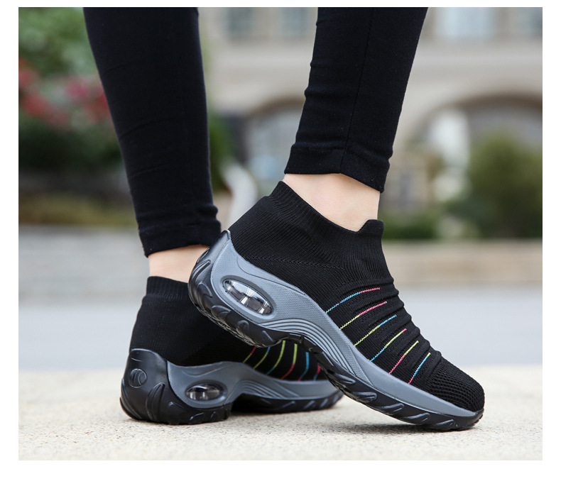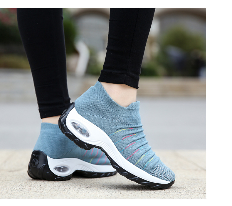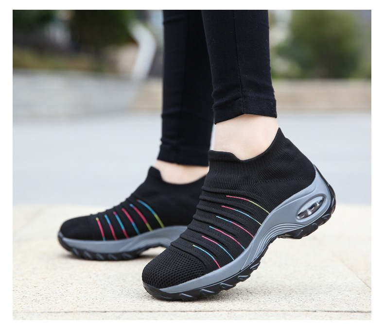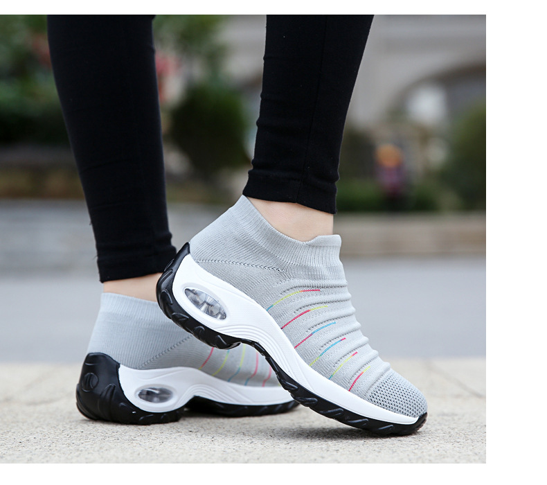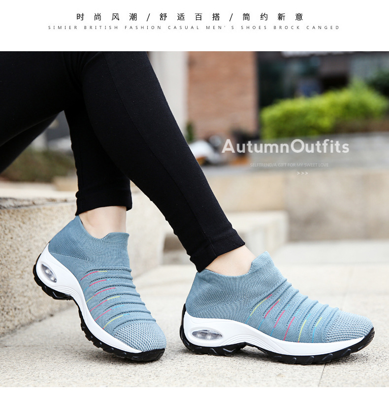 새로운 크로스 국경 뜨거운 판매 전자 상거래 플러스 사이즈 여성 신발 에어 쿠션 비행 짠 운동화 플레이버 신발 패션 캐주얼 신발 양말 신발