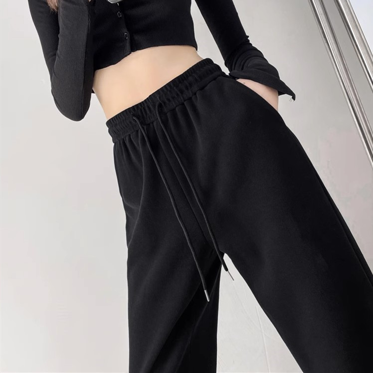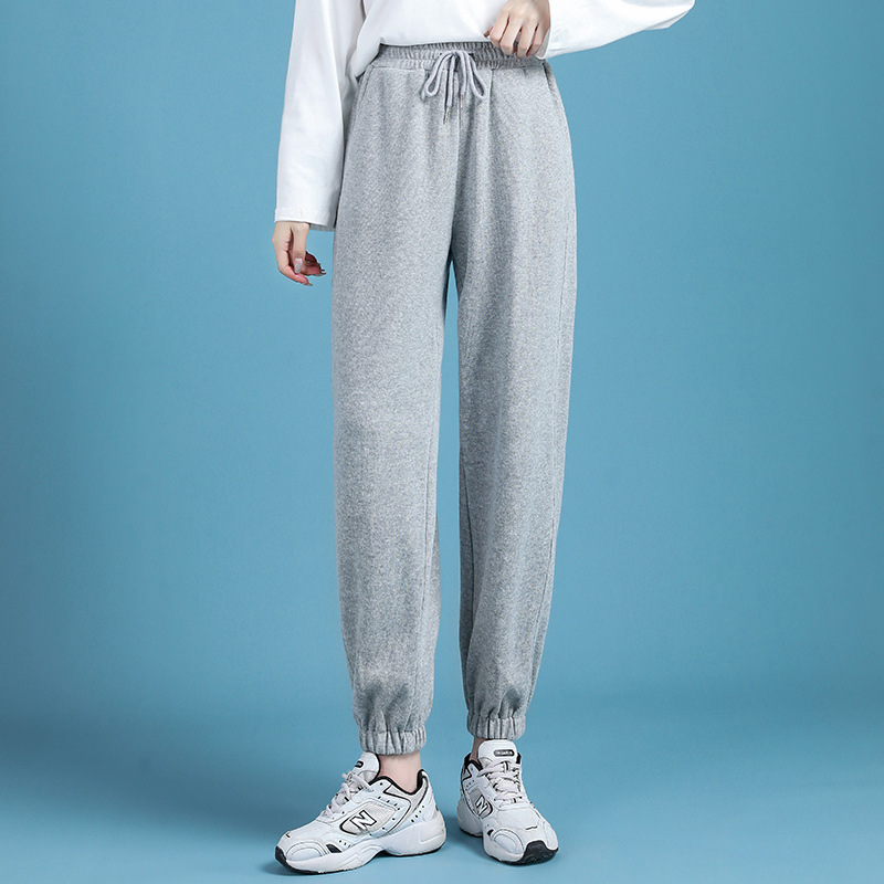 스포츠 바지 여성 바지 2023 새로운 작은 바지 회색 캐주얼 가을/겨울 조커 기모 자른 바지스토어 가기