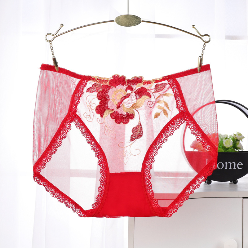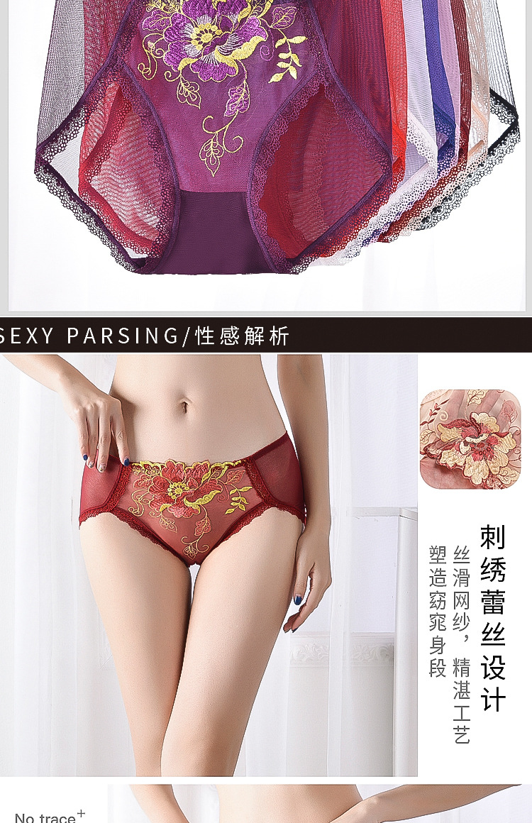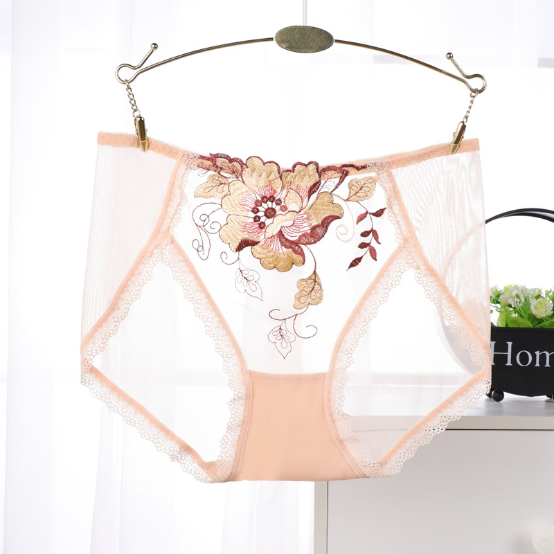 자수 레이스 섹시한 여성 속옷 고탄성 엉덩이 통기성 더블 레이어 하단 가랑이 얇은 비 마킹 삼각형 반바지