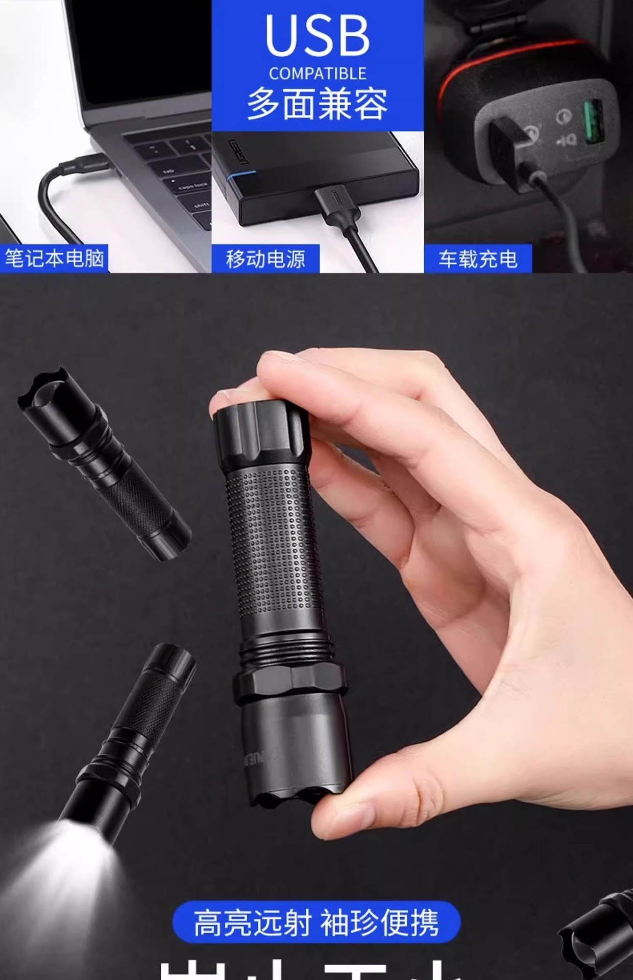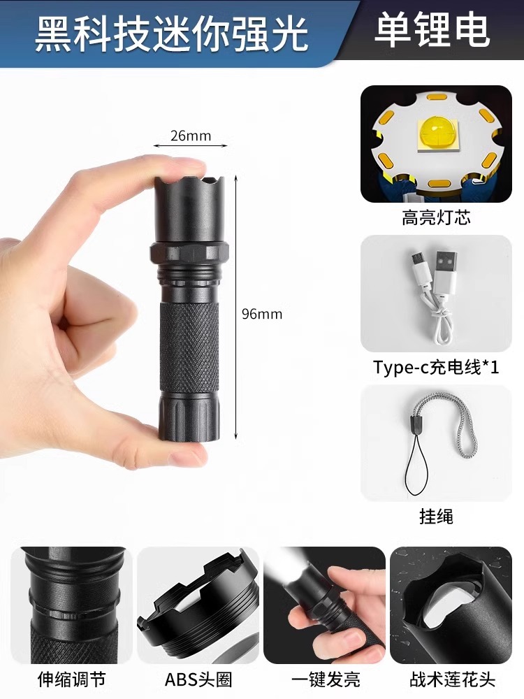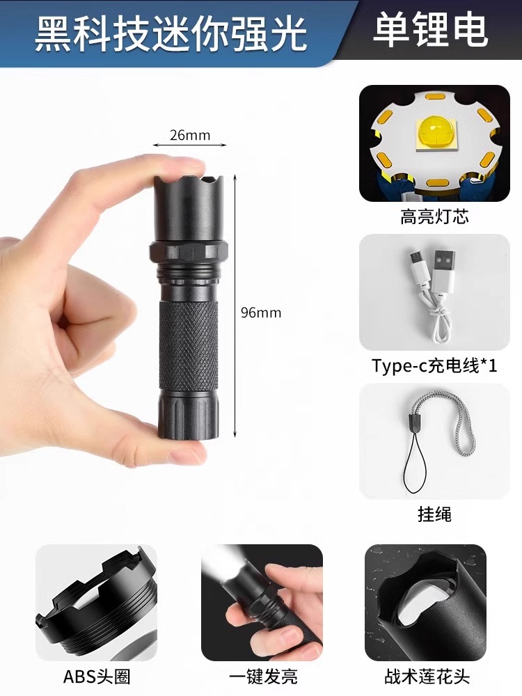 손전등 충전식 슈퍼 밝고 원격 소형 미니 휴대용 가정용 야외 내구성 크세논 LED 램프