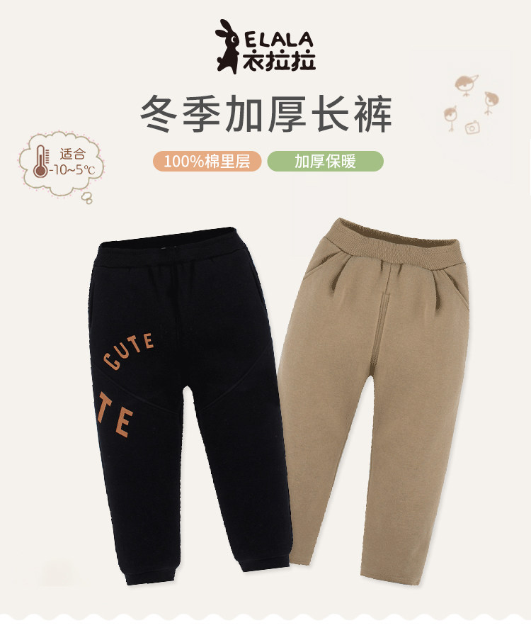 옷 Lala 2022 겨울 어린이 따뜻한 바지 소년과 소녀 더블 레이어 두꺼운 아기의 캐주얼 스포츠 바지스토어 가기