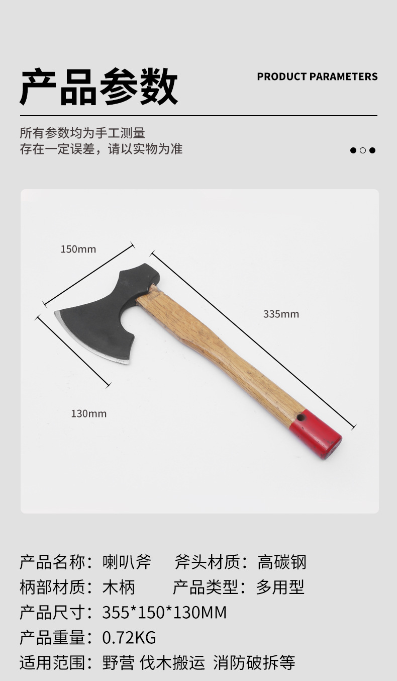 경적 도끼 야외 장작 절단 도끼 캠핑 화재 철거 다기능 도끼 고 탄소강 나무 손잡이 도끼