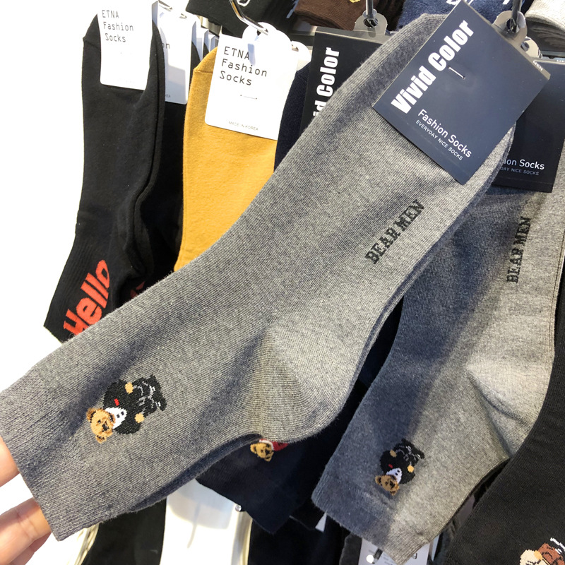 [재고] 한국 수입 양말 생생한 남자 양말 만화 곰 패션 스트리트 양말스토어 가기