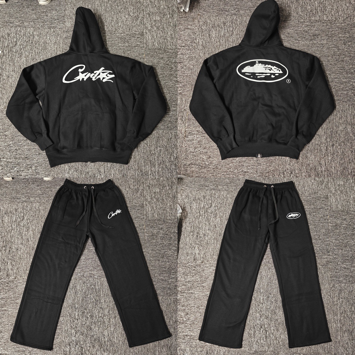 데빌 아일랜드 플리스 안감 지퍼 후드티 자켓 스트리트 힙합 패션 세트 심플하고 다재다능한 스포츠 바지 트렌디스토어 가기