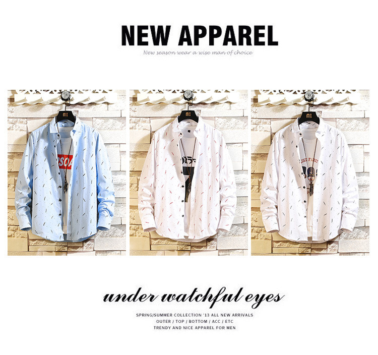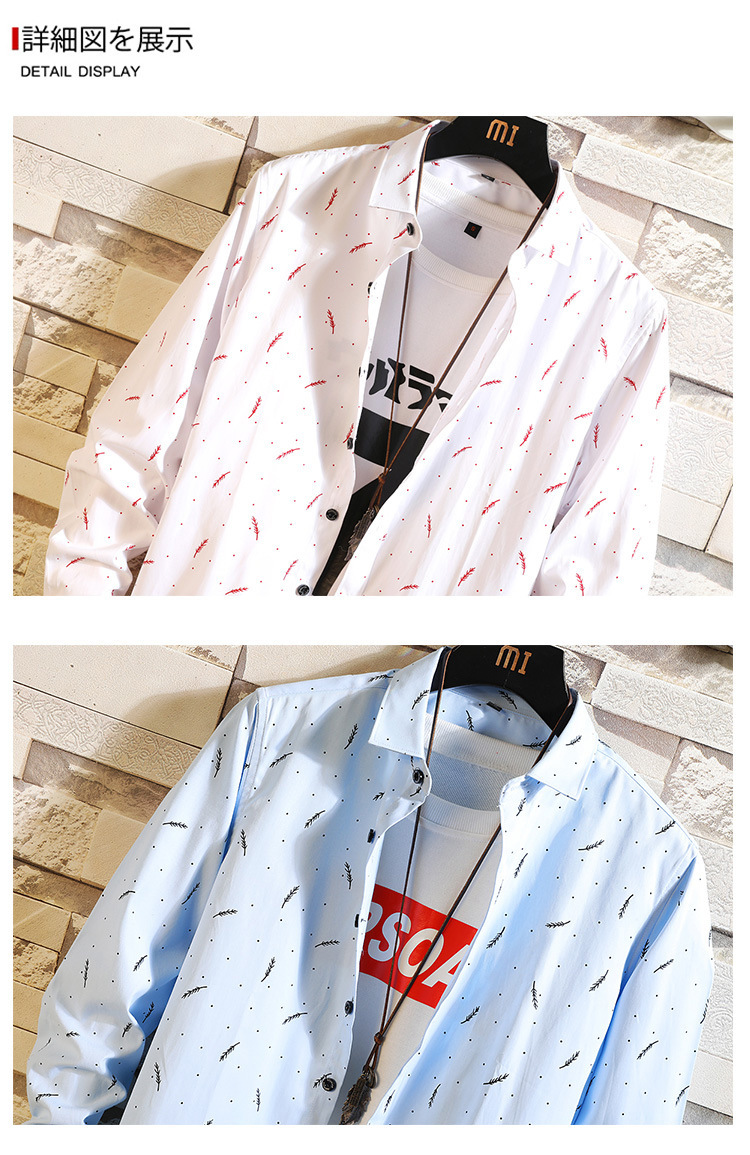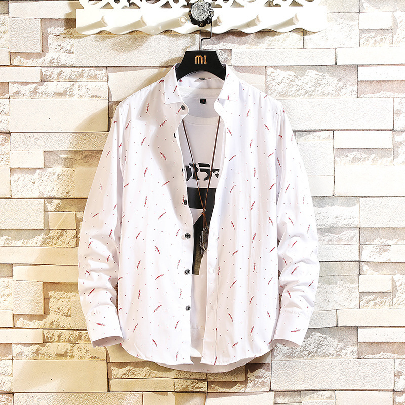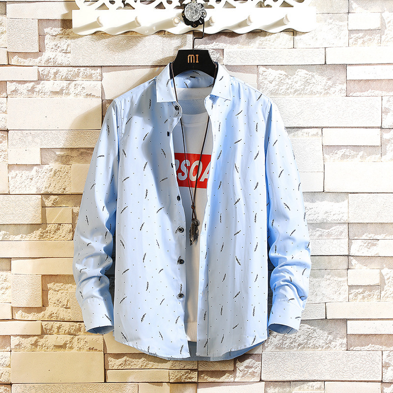 2023 새로운 셔츠 남자의 캐주얼 패션 깃털 인쇄 플러스 사이즈 긴 소매 셔츠 대외 무역 아마존 도매 한국어 버전