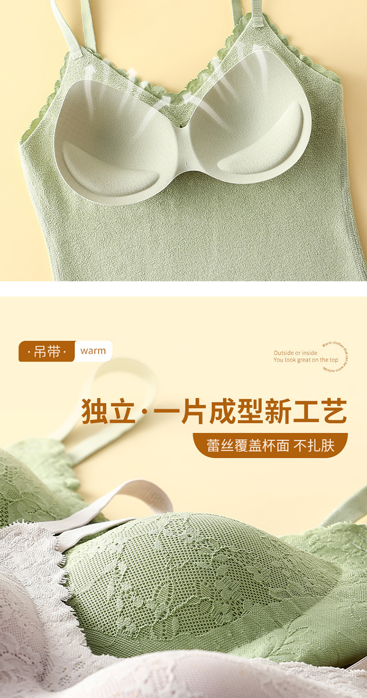 가을과 겨울 원활한 브러시 레이스 슬링 따뜻한 조끼 여성의 벨트 가슴 패드 기모 조끼 내부베이스 셔츠 속옷