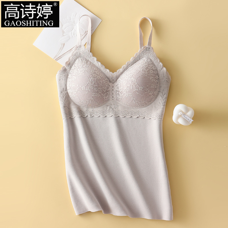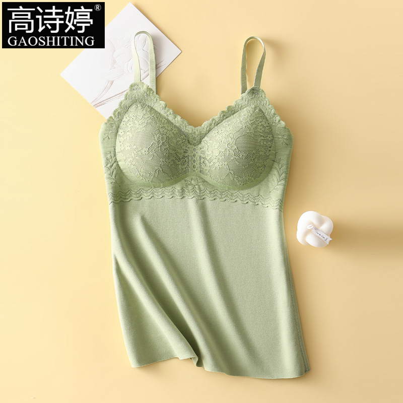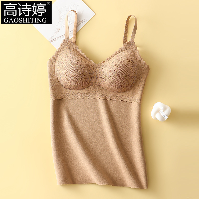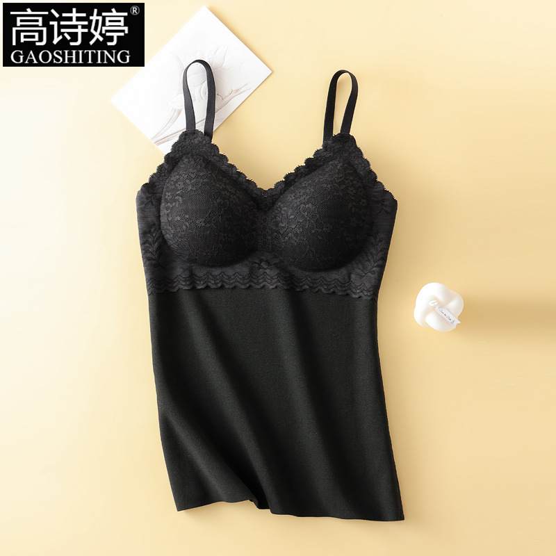 가을과 겨울 원활한 브러시 레이스 슬링 따뜻한 조끼 여성의 벨트 가슴 패드 기모 조끼 내부베이스 셔츠 속옷스토어 가기