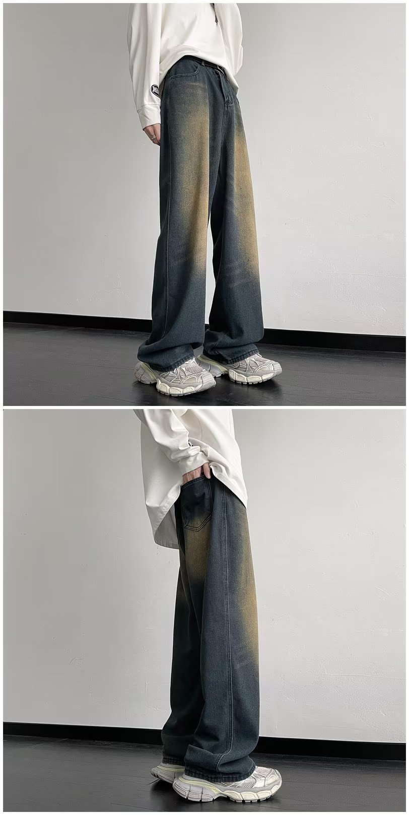아메리칸 스타일 하이 스트리트 빈티지 스트레이트 청바지 남성용 트렌디 브랜드 인 워시 올드 매치 루즈한 와이드 레그 롱 팬츠