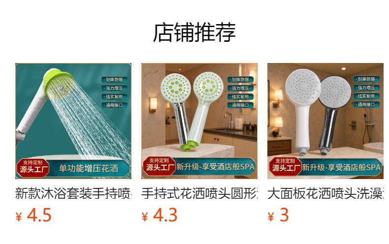 샤워용 전기도금 핸드헬드 샤워헤드, 레인 스프레이, 혼합수, 가압식, 벽걸이형, 호텔 및 B&B 전용스토어 가기