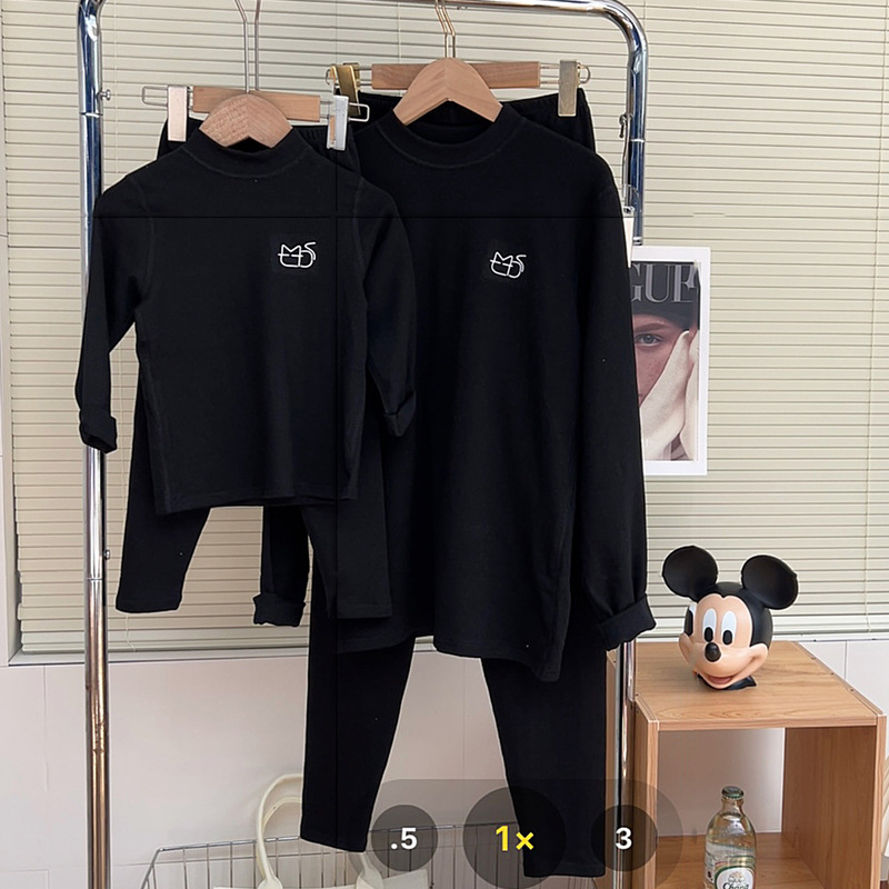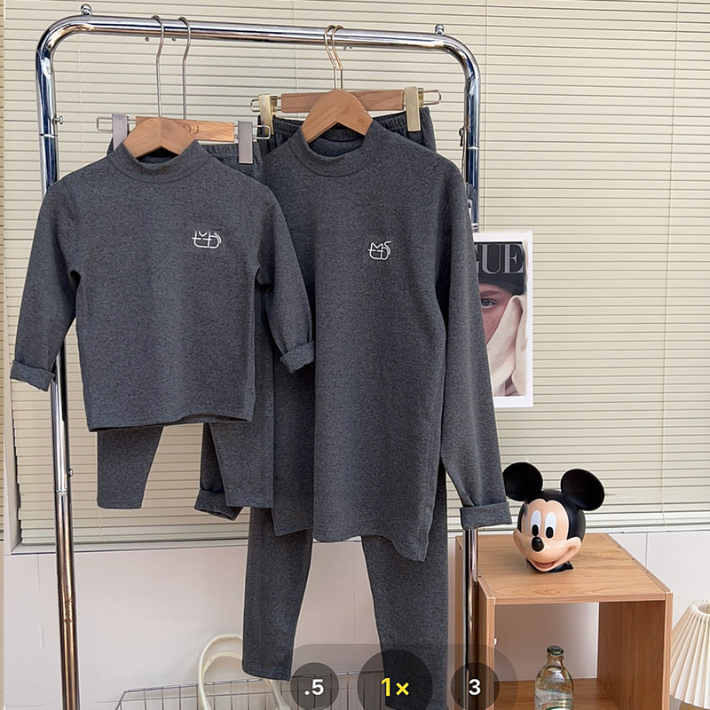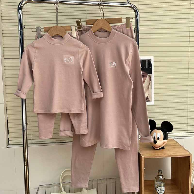 가을과 겨울 부모-자식 가정 옷 잠옷 네 중간 칼라 기본 열 속옷 세트 소년 소녀 가을 옷과 바지 가족스토어 가기