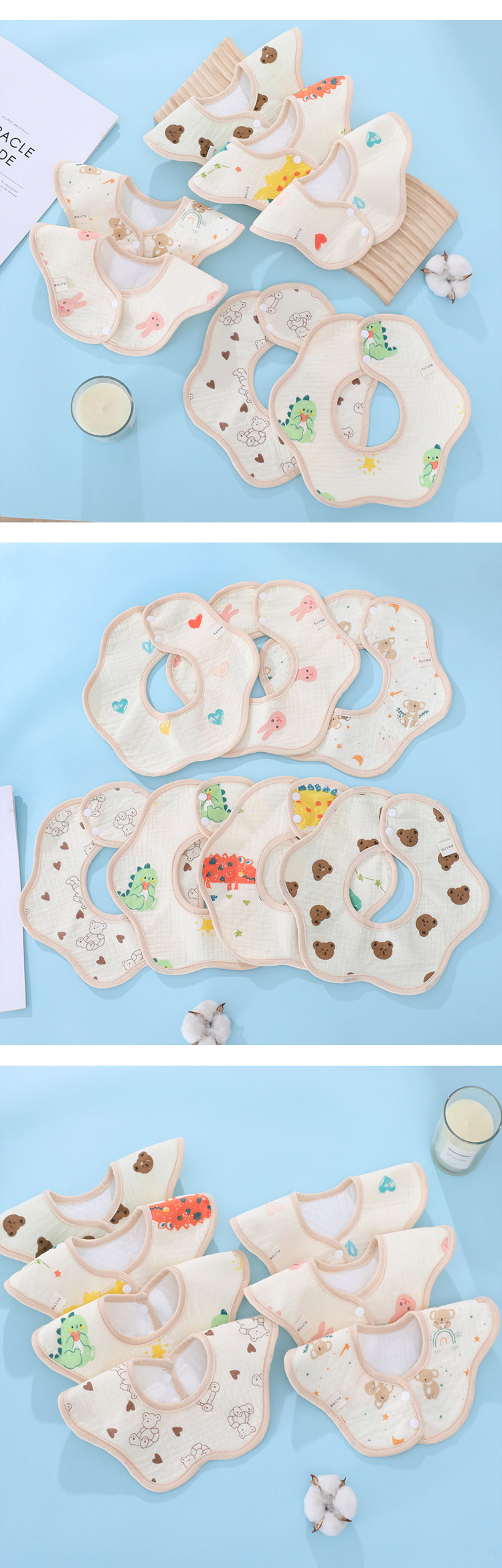 아기 꽃잎 턱받이 제조업체, 구토 패드, 침 흡수 타월, 신생아 용품, 어린이 턱받이, 흡수성 만화 디자인스토어 가기